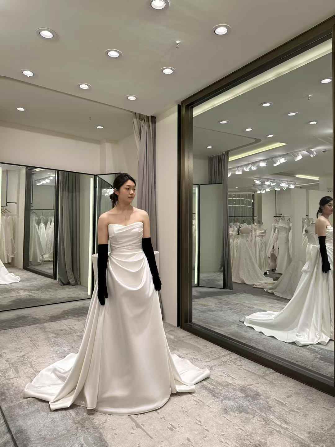 上品 ベアトップ ウエディングドレス 取り外し袖 ロングトレーン マーメイドライン 2次会 前撮り 花嫁 挙式