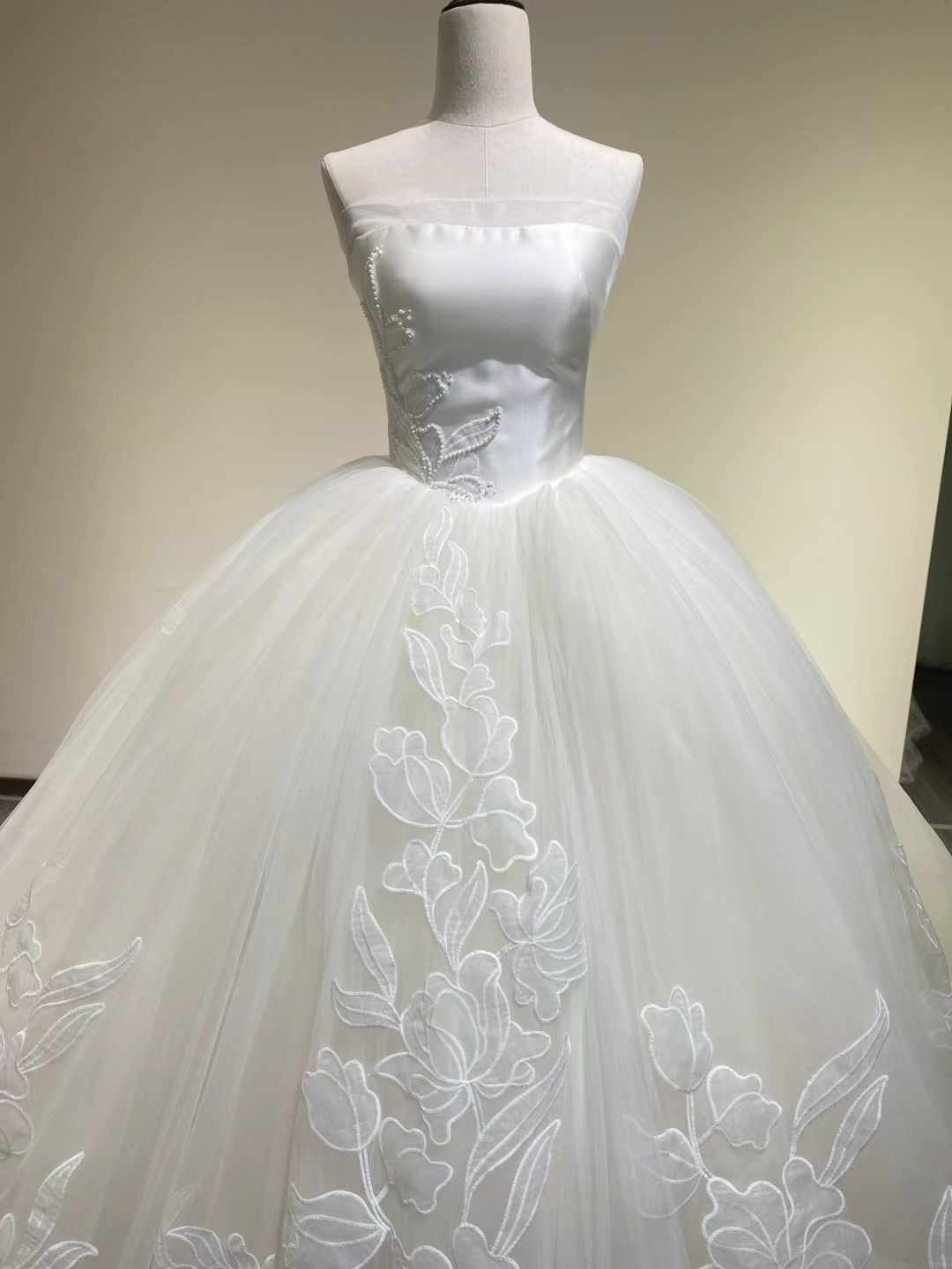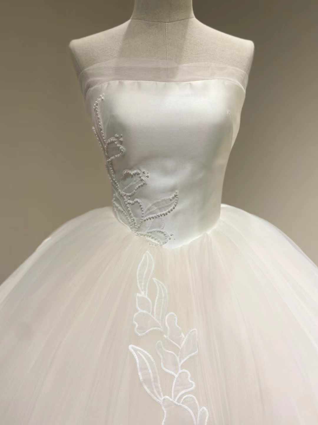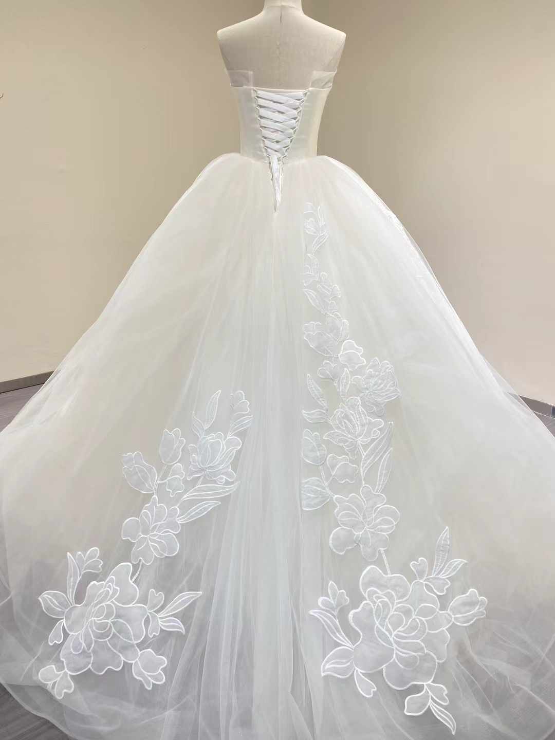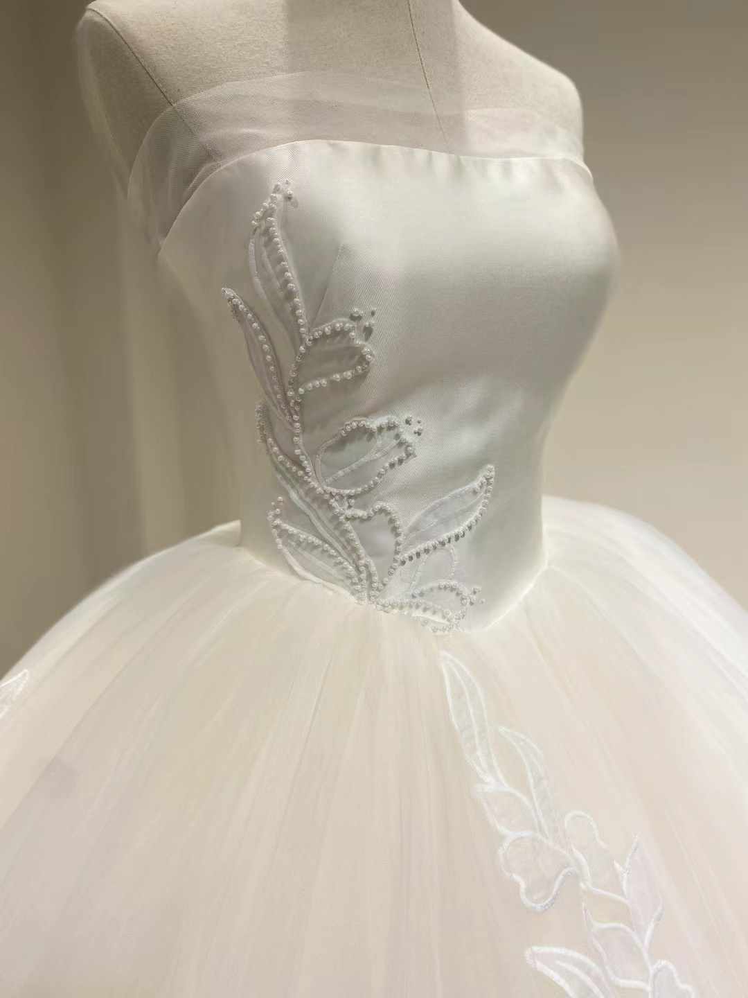 人気上昇!オフホワイト ベアトップ 3D立体レース刺繍 ウエディングドレス ス プリンセスライン テラコッタ結婚式/披露宴