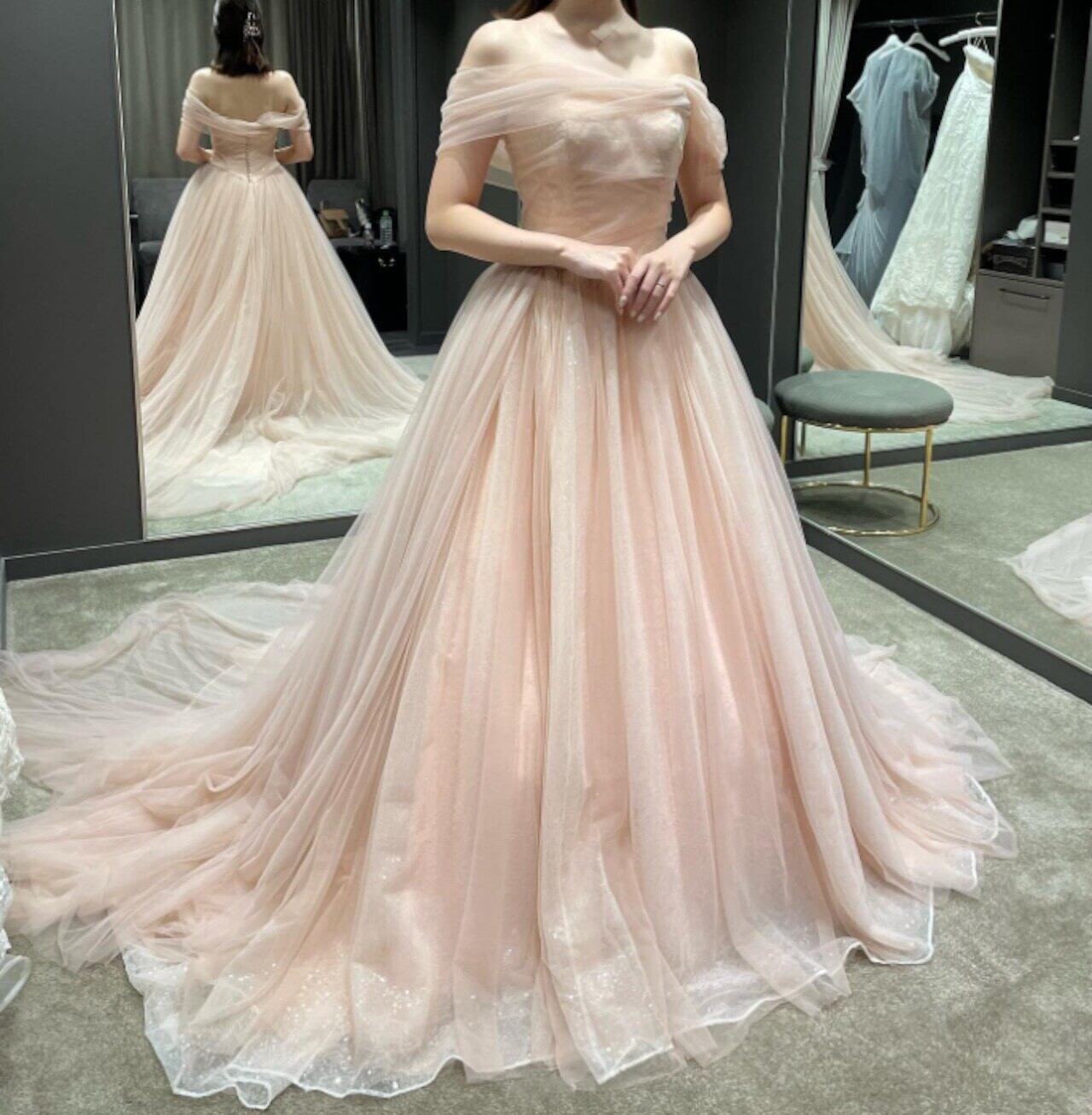 カラードレス パーティードレス ピンクドレス チュール オフショルダ― 結婚式/披露宴