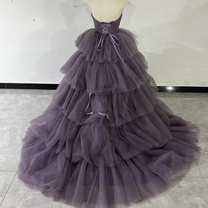 スタイリッシュ カラードレス ふわふわドレス ハートネット パープル 編み上げ チュールドレス 結婚式/披露宴