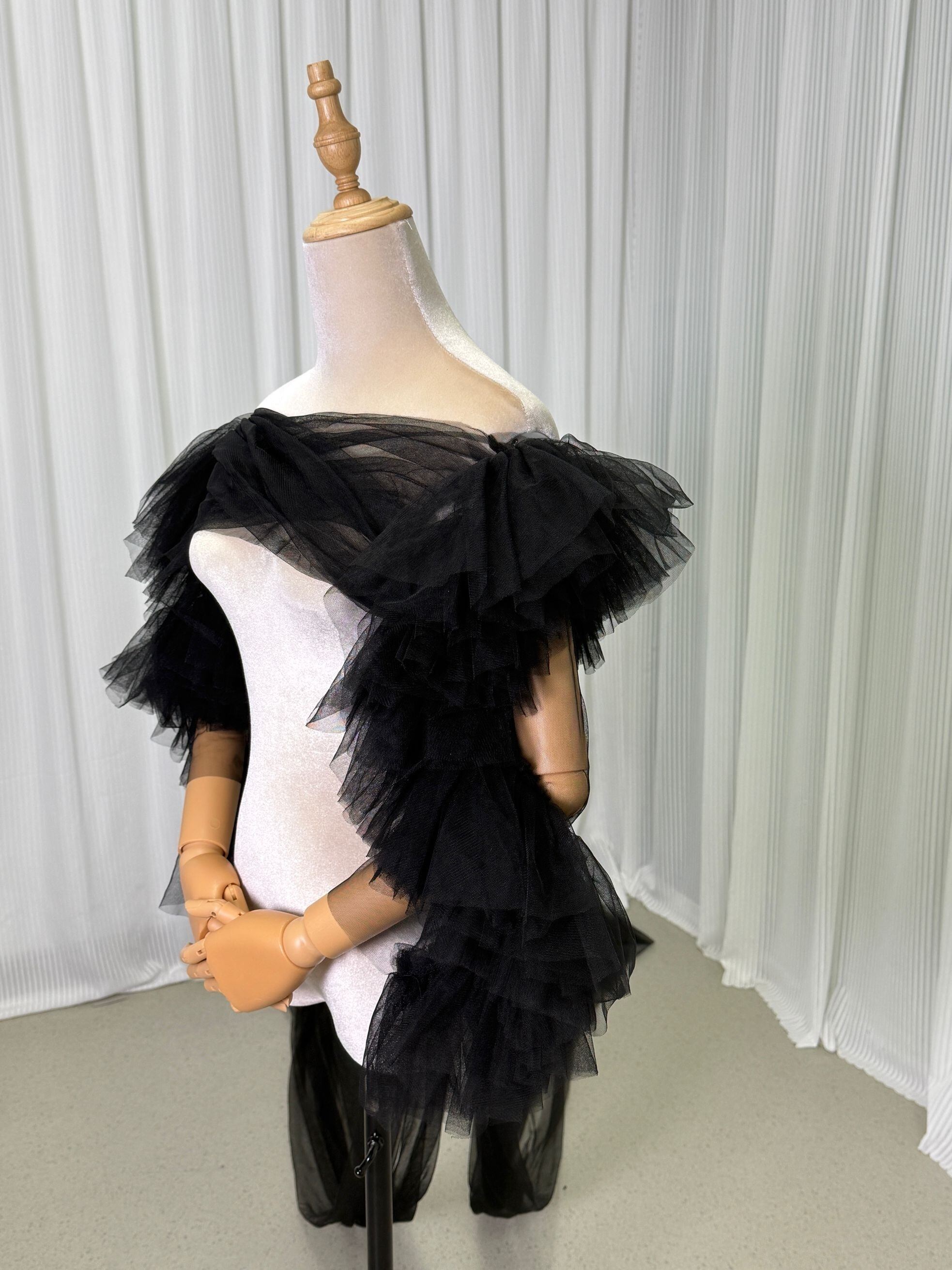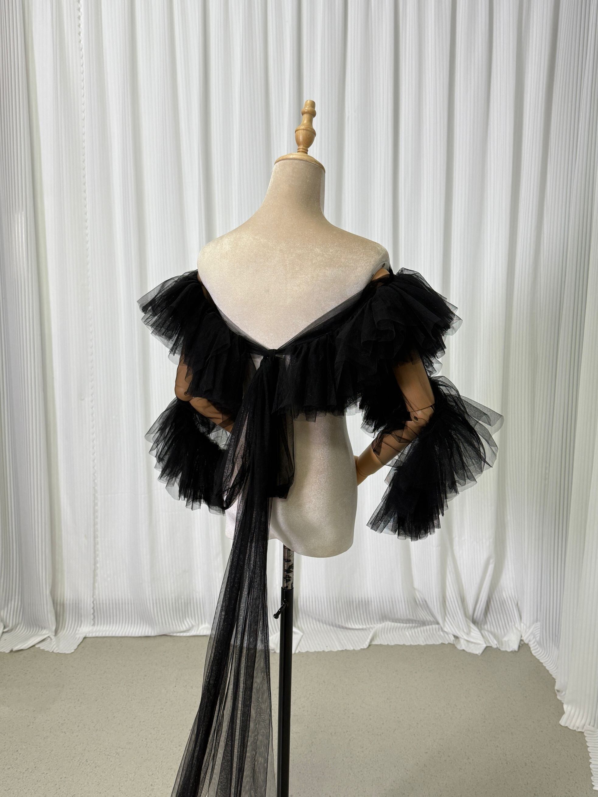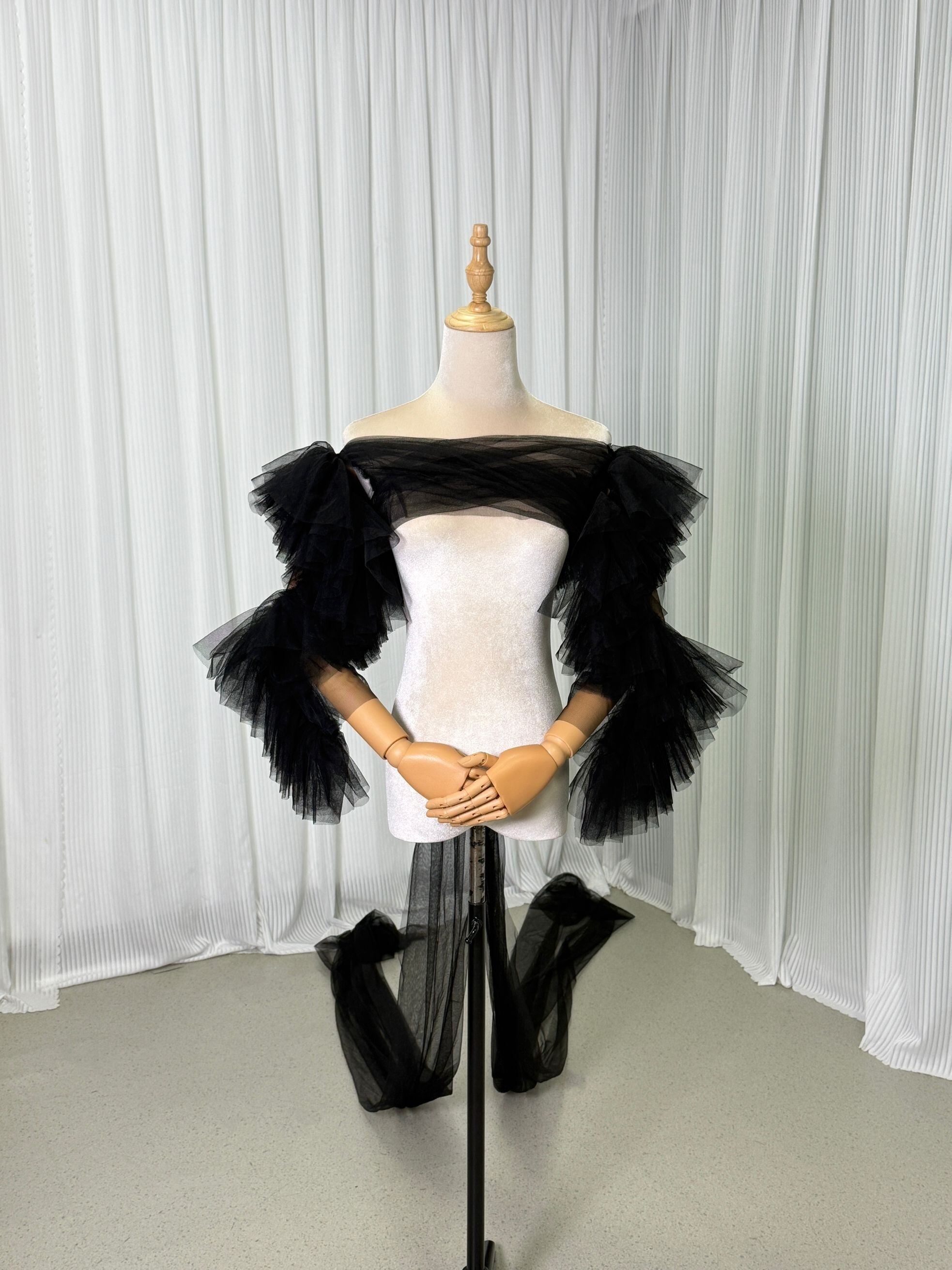 料無料!ウエディングドレスソフトチュール  黒 色 オフショルダー サイズ調整可能 ドレスアレンジ お色直し