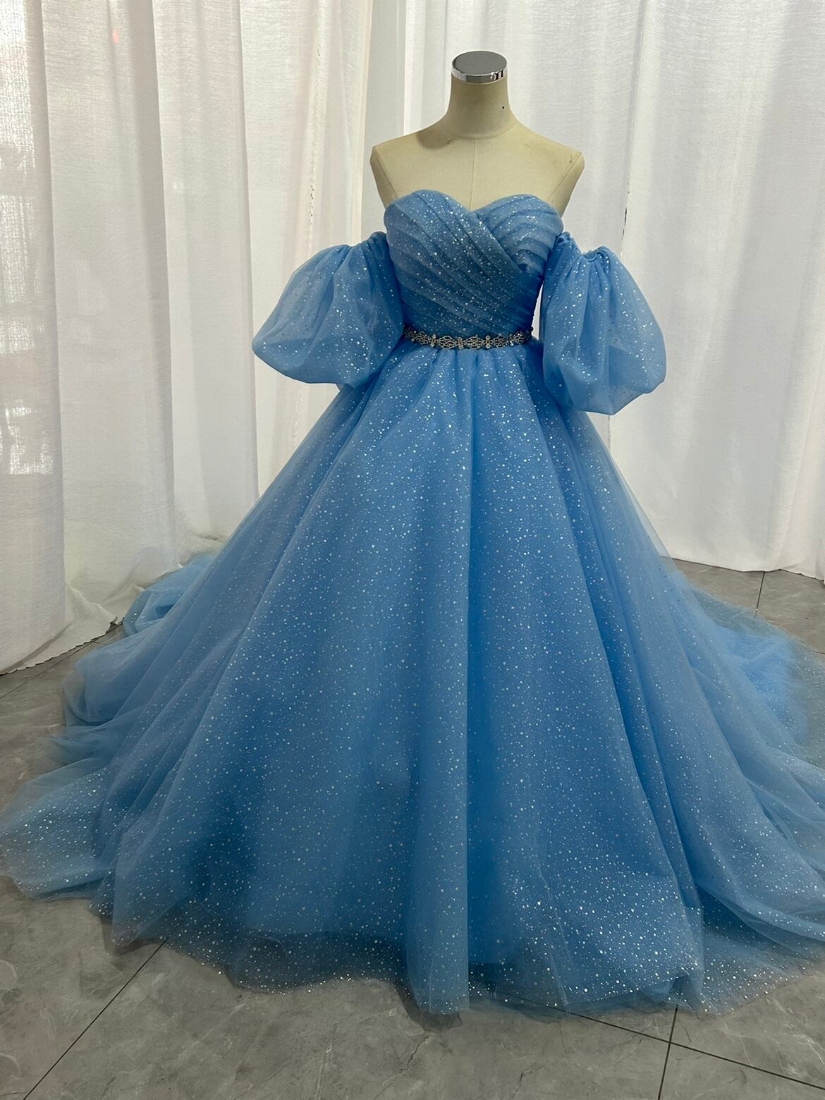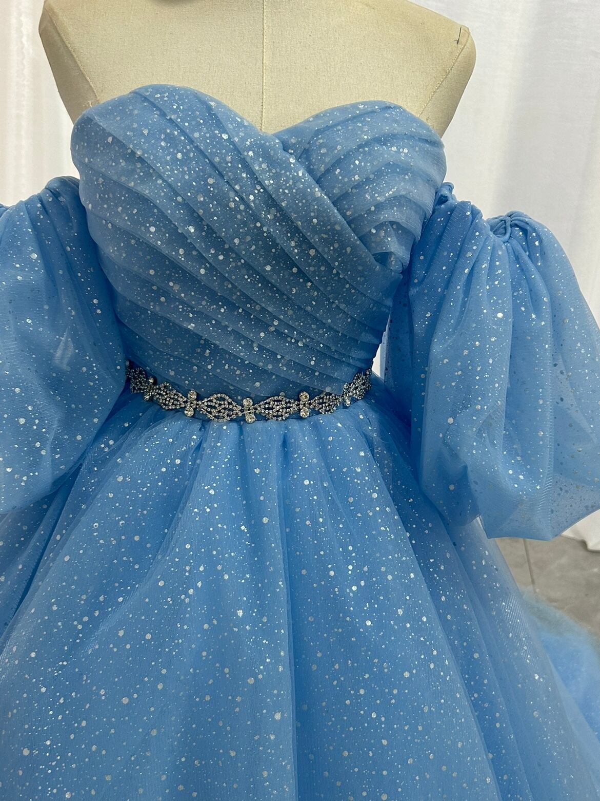 人気上昇!青色 キラキラチュール ソフトチュール カラードレス パーティードレステラコッタ結婚式/披露宴