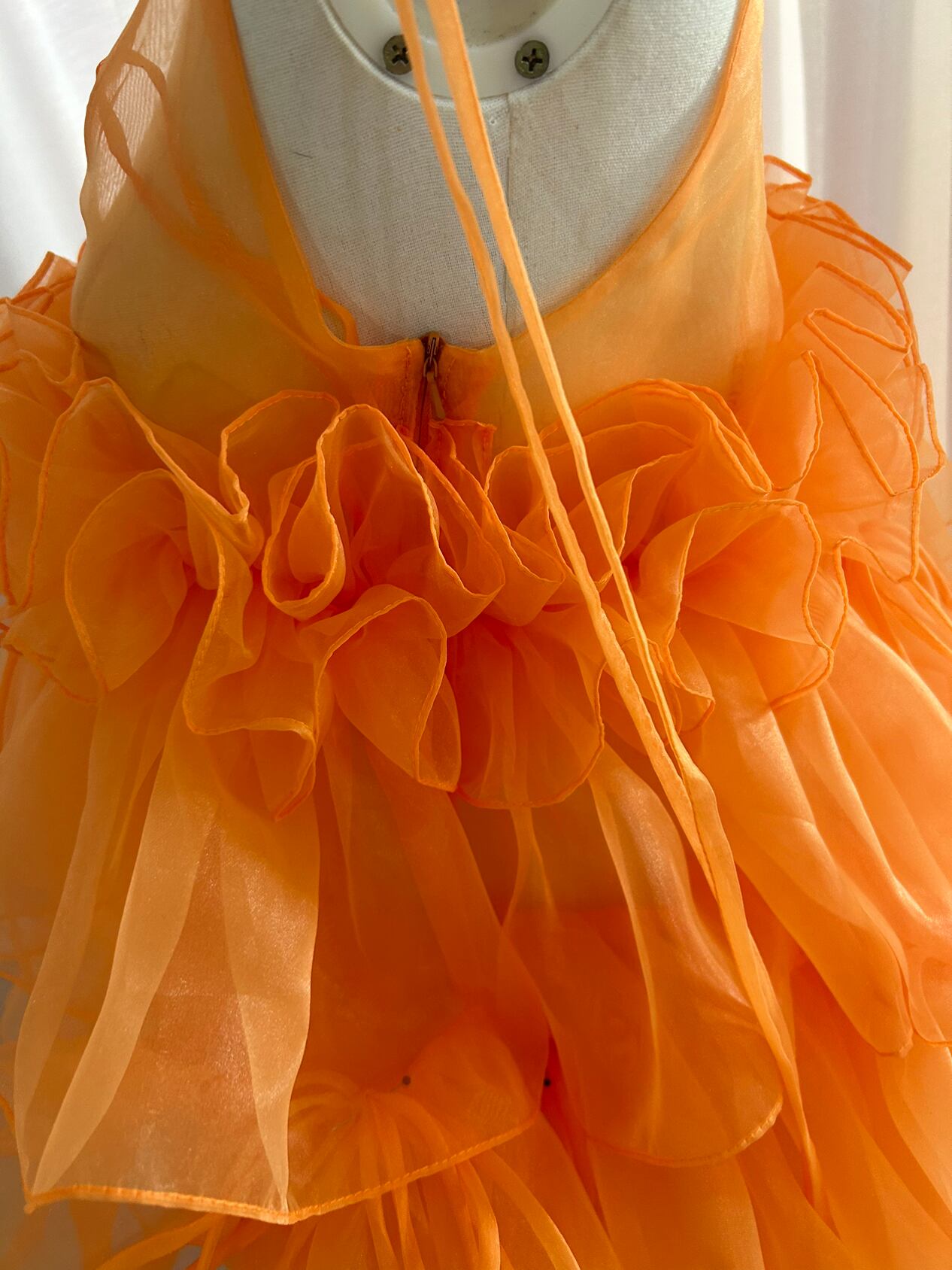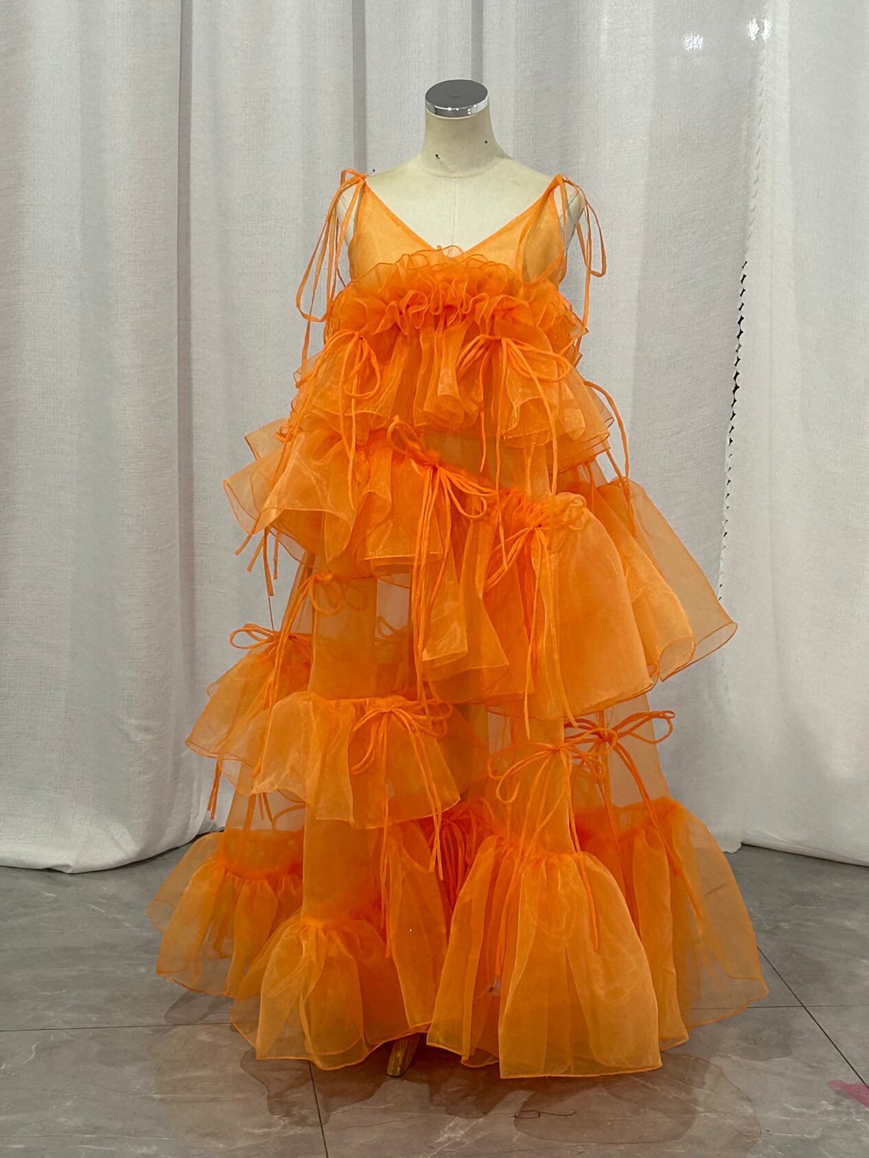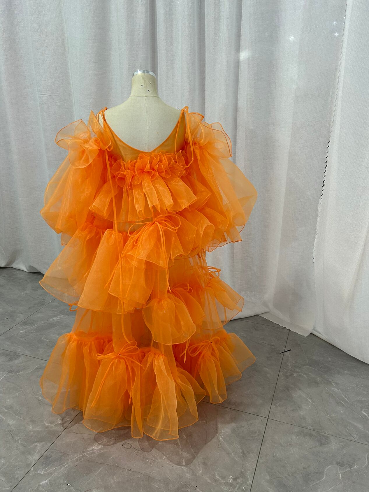 送料無料 !オレンジ 上質オーガンジー チュールドレス カラードレス 柔らかく重ねたチュールスカート/前撮り/花嫁