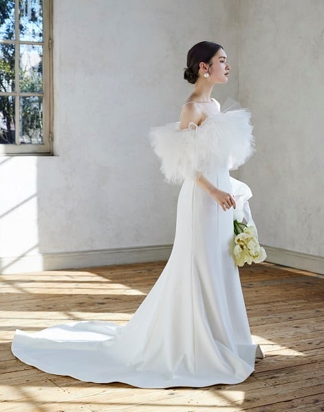 上品 オフホワイト オフショルダー カラードレス ソフトマーメイドライン パフスリーブ 結婚式/披露宴/前撮り