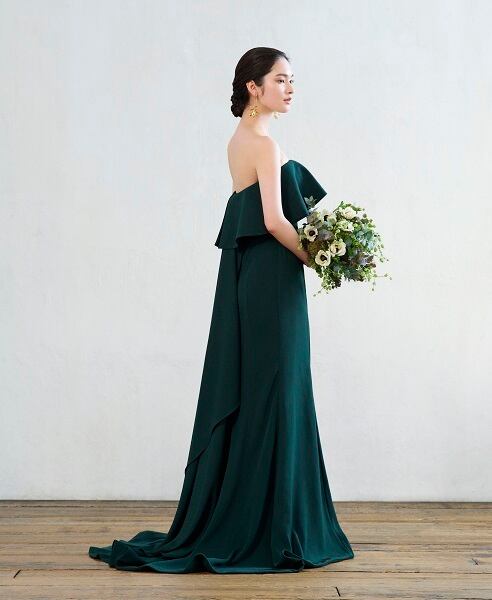 高品質!グリーン オフショルダー カラードレス ソフトマーメイドライン  結婚式/披露宴