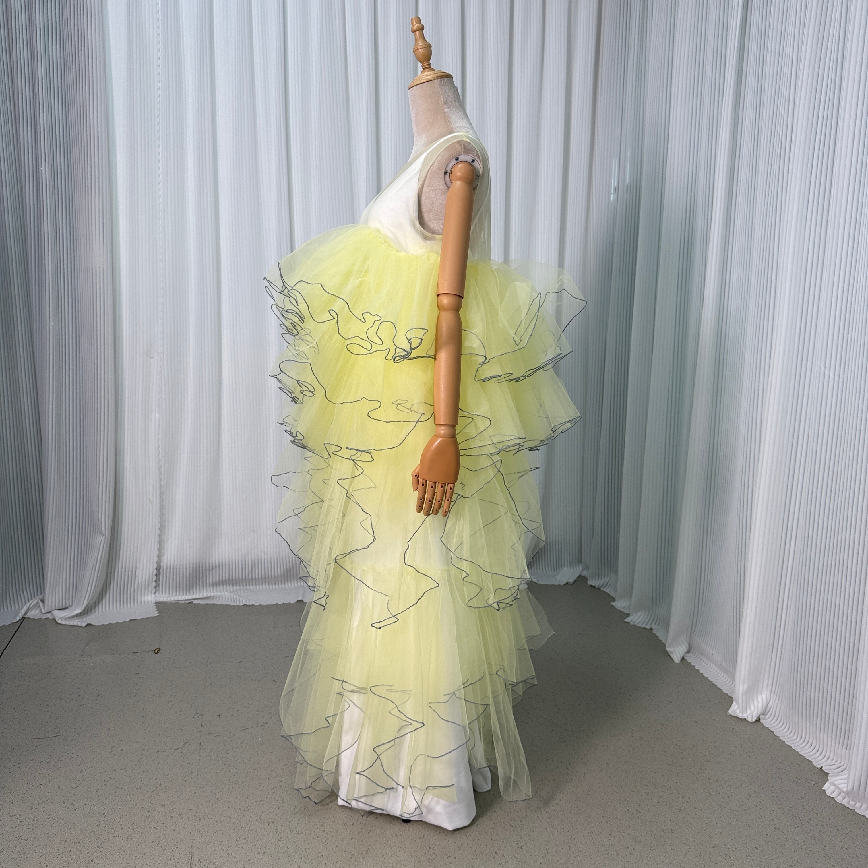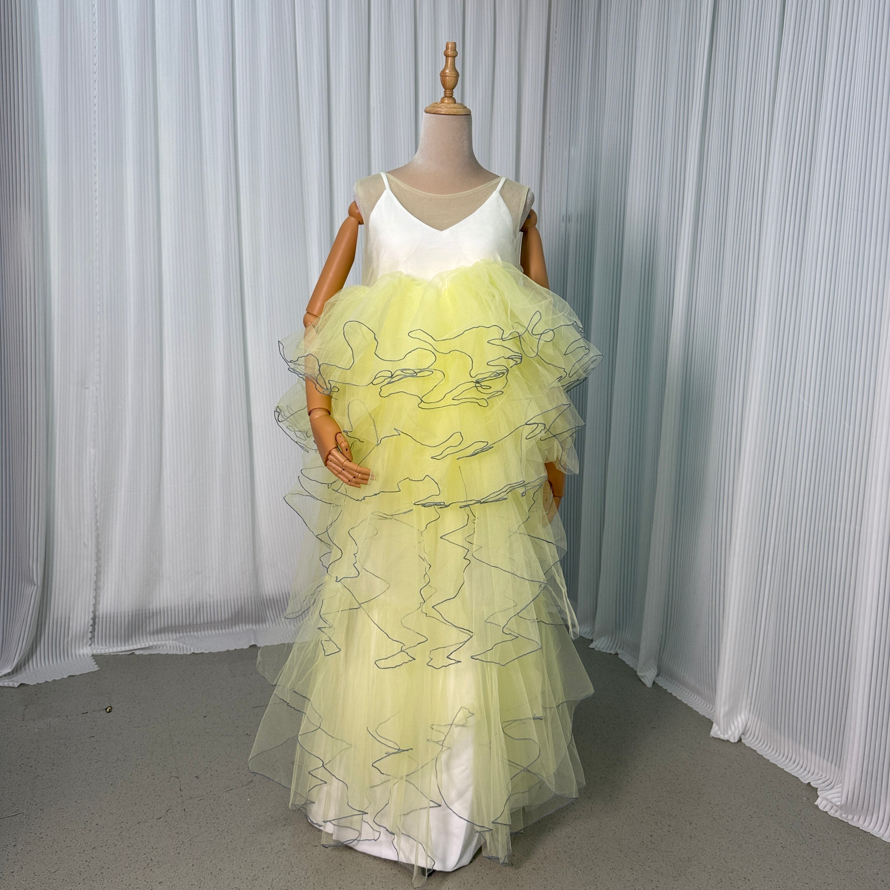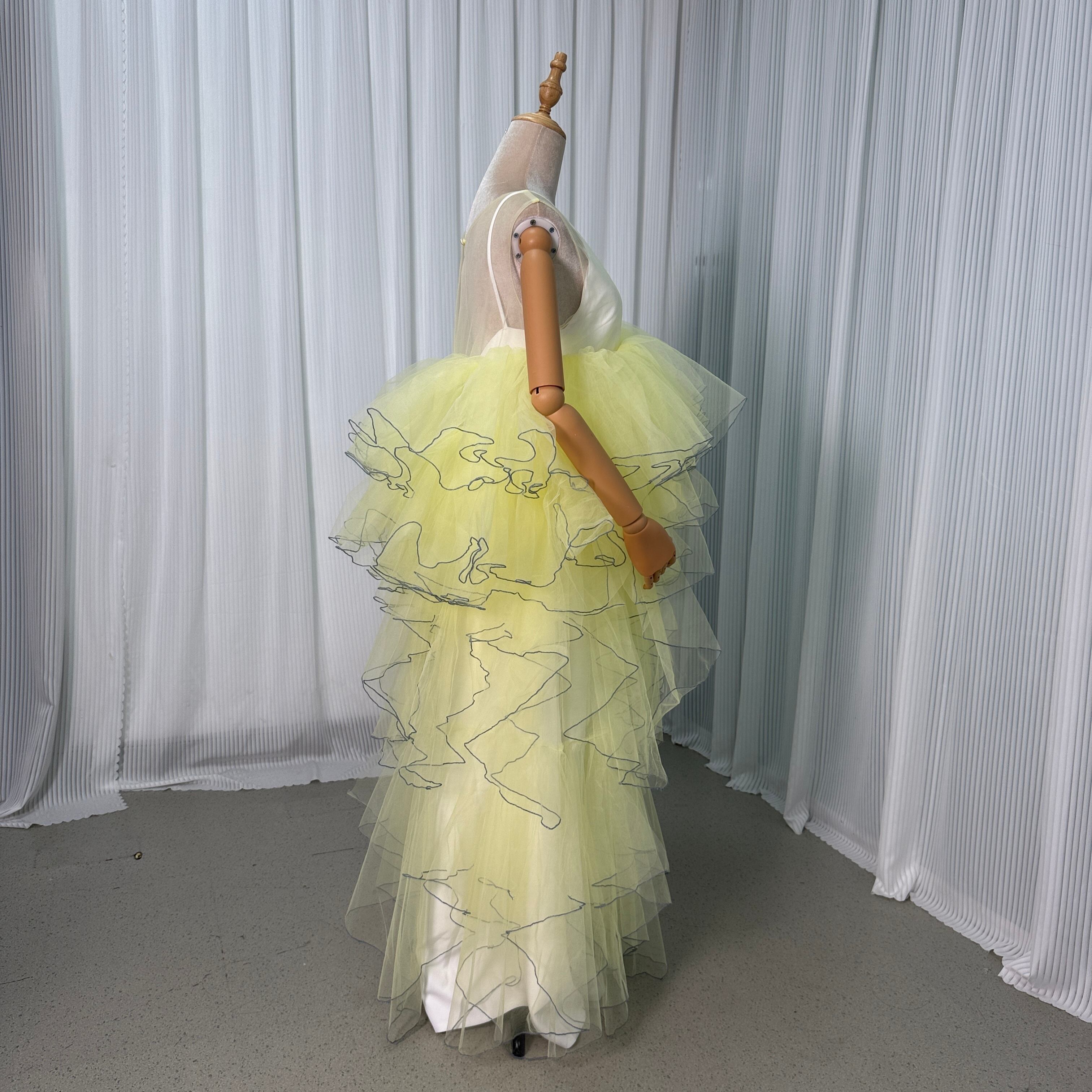 送料無料 !上品!黄色 ペールトーンのミント チュールドレス ソフトチュール カラードレスオーバースカート2点セット結婚式/披露宴