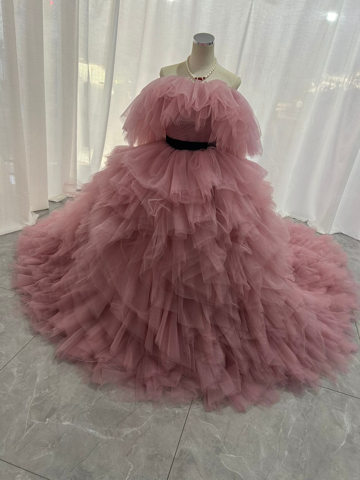 カラードレス ピンクソフィア 取り外しオフショルダー ふわふわドレス 抜群のおしゃれ見え 目立つ 前撮り 花嫁