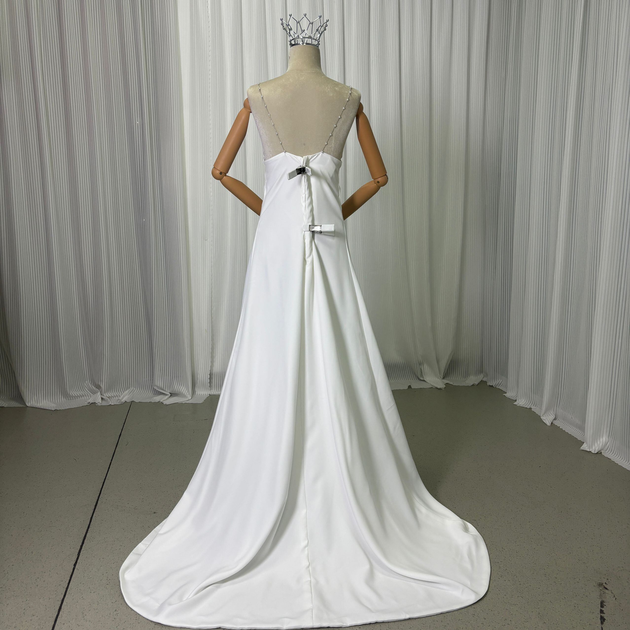 送料無料!高品質! オフホワイト キャミソール パール ウエディングドレス ワンピース