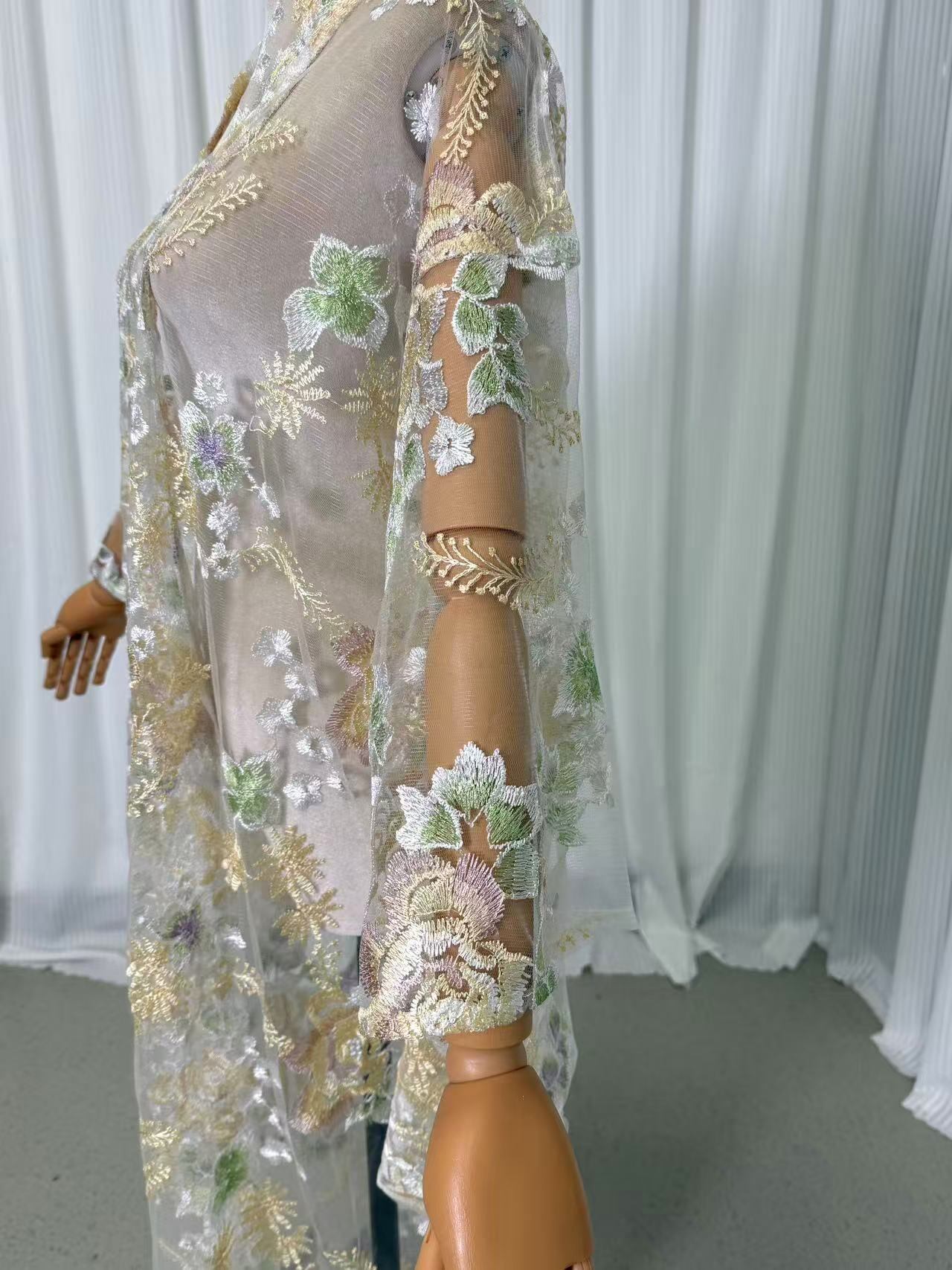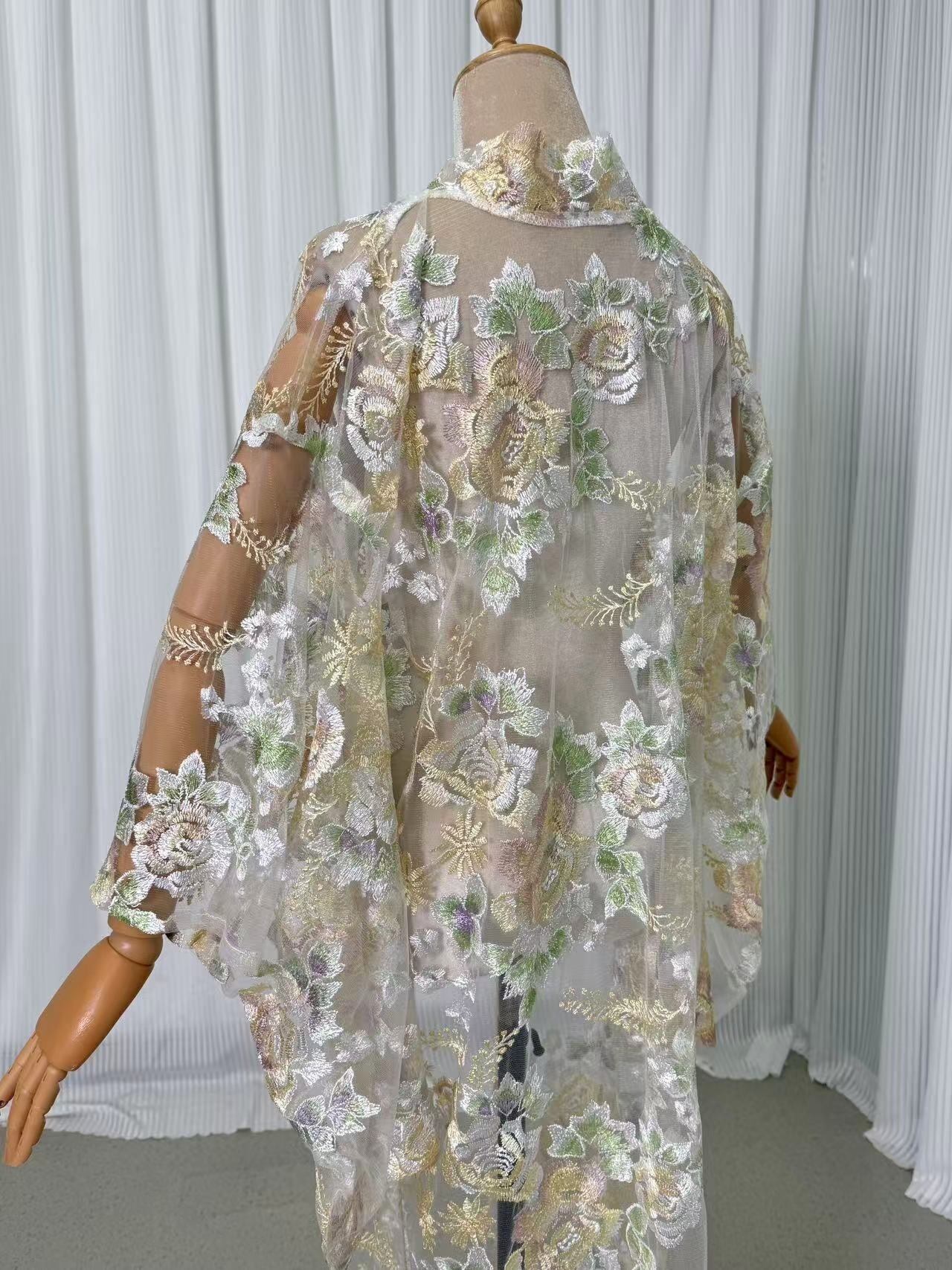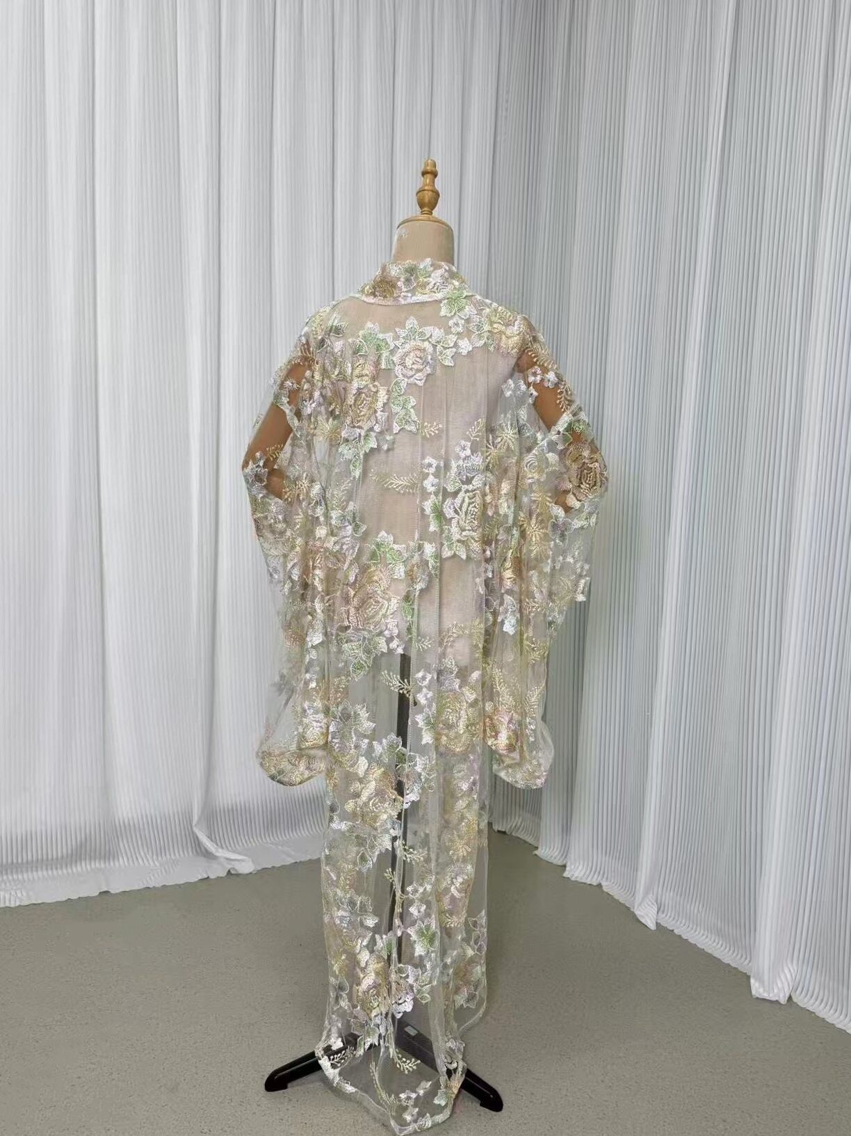 上品 レースボレロ トップス ハンドメイドパール ウエディングドレス花柄のモチーフ刺繍が美し
