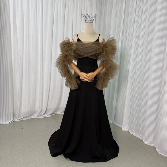 人気上昇 ブラック /ブラウン カラードレス キャラソール クレープ生地 フリル ボレロ キャラソール 前撮り