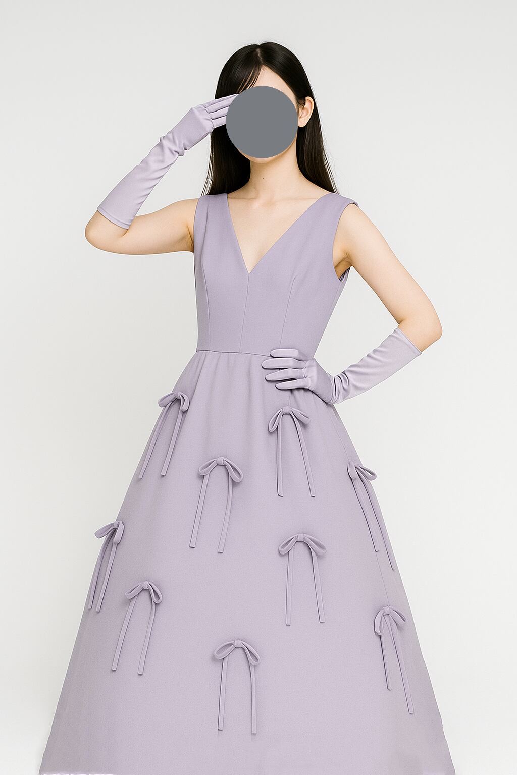 カラードレス Vネックドレス パープル ノースリーブ リボン 前撮り 結婚式