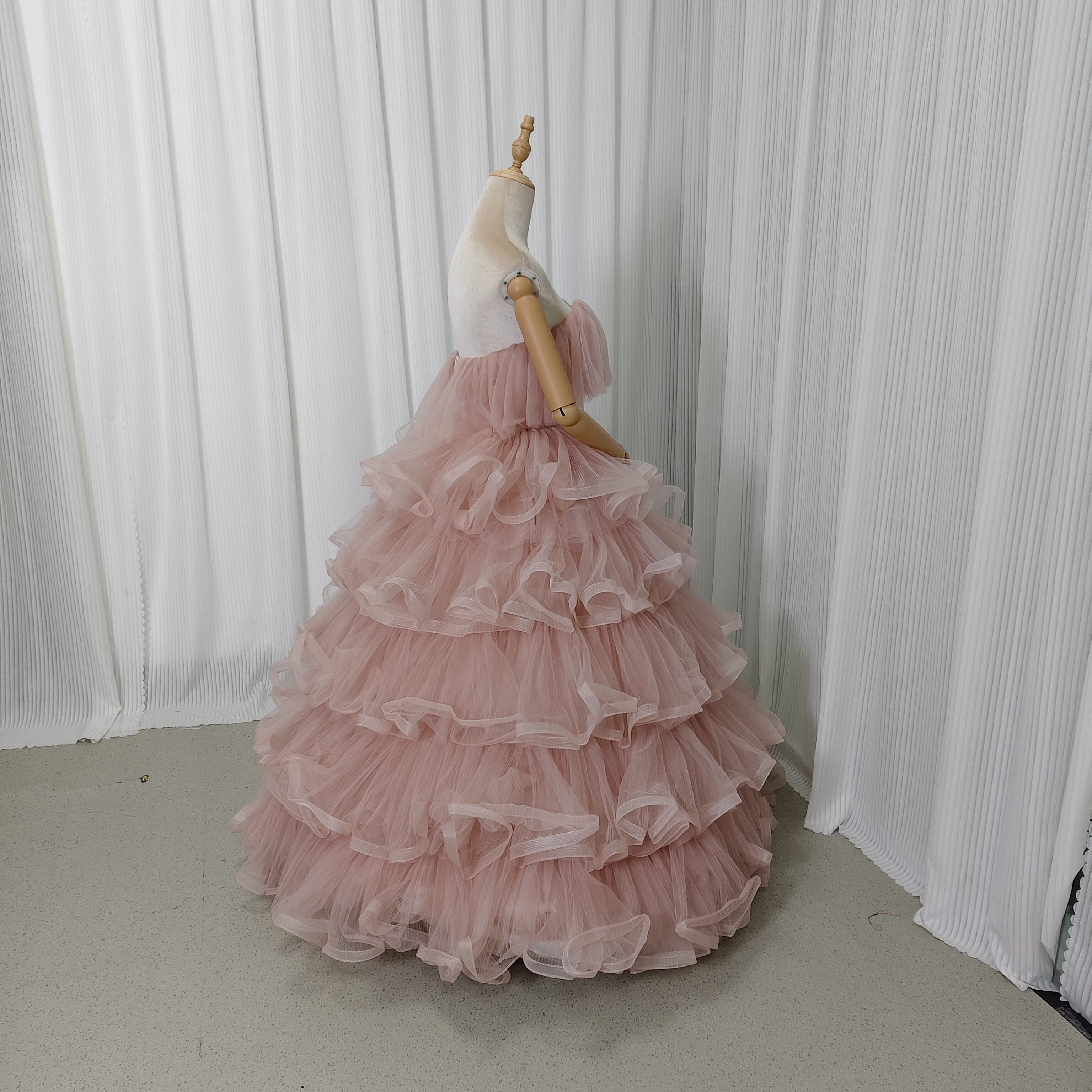 もこもこチュールドレス ピンク カラードレスフリルオフショルダーお色直し ふわふわ前撮り/花嫁/結婚式/披露宴