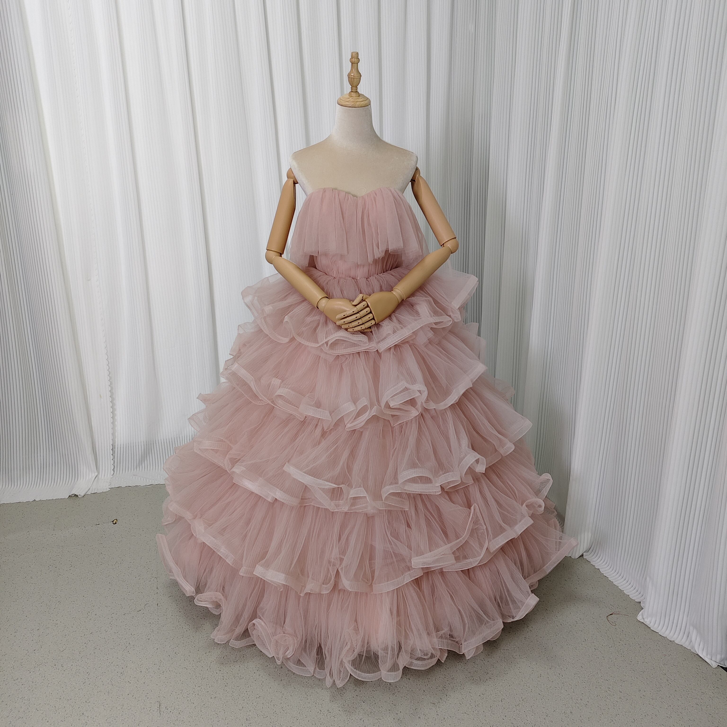 もこもこチュールドレス ピンク カラードレスフリルオフショルダーお色直し ふわふわ前撮り/花嫁/結婚式/披露宴