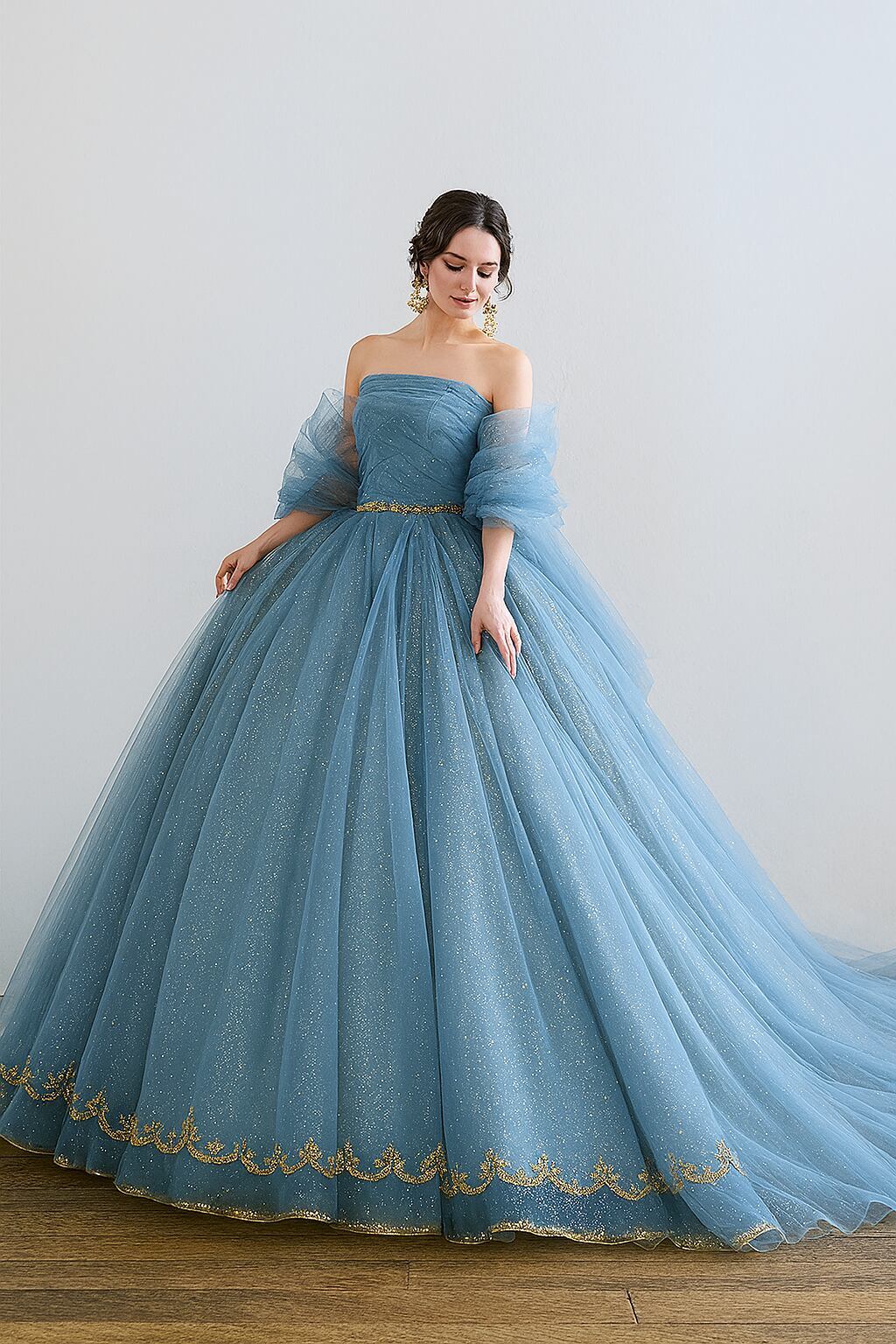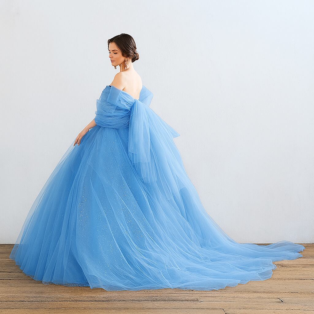 人気上昇 ブルー カラードレス オーバードレス チュールファスナー ボリュームドレス 結婚式/披露宴/前撮り