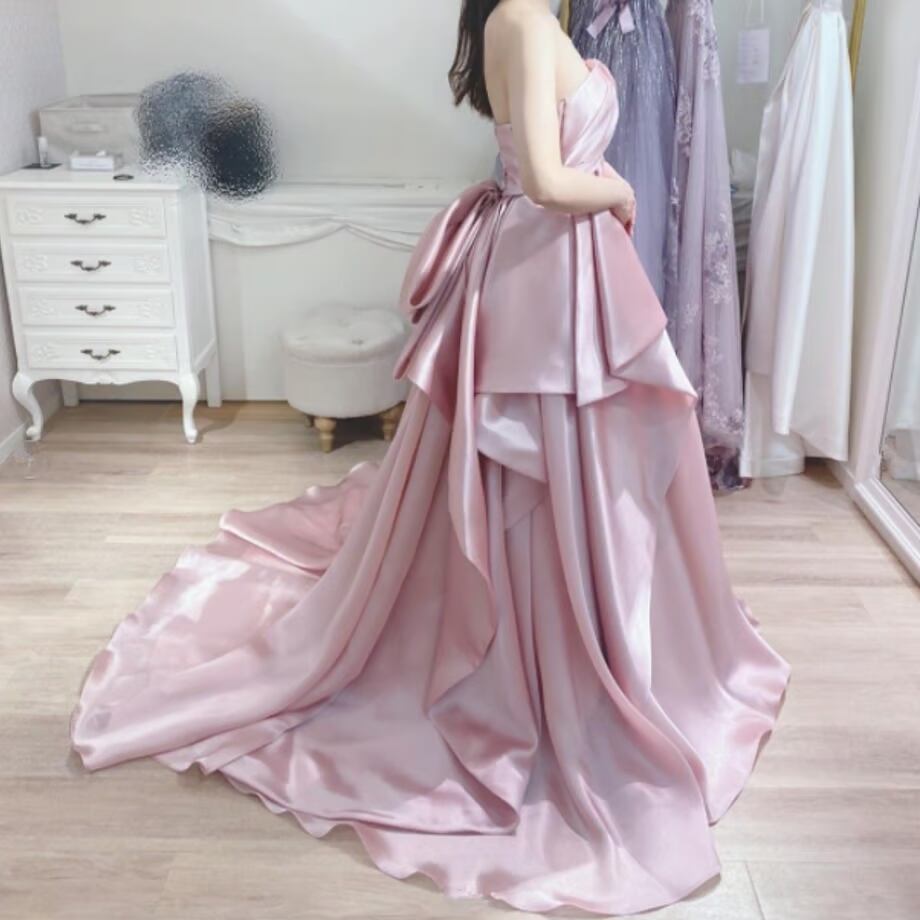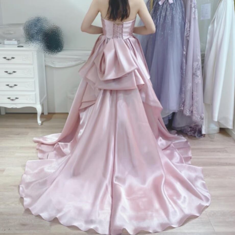 送料無料!カラードレス ノースリーブ ピンクドレス Aライン フリルドレス ブライダル 前撮り