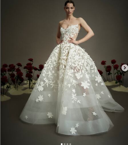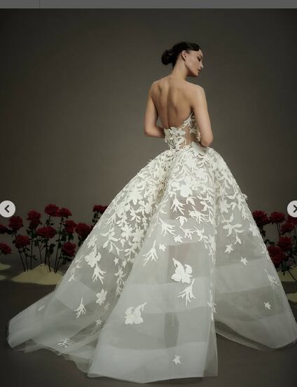 上品! ベアトップ 3D立体レース刺繍 ウエディングドレス プリンセスライン 前撮り/花嫁/結婚式/披露宴/