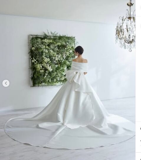上品!オフホワイト オフショルダー ウエディングドレス 華やかなトレーン前撮り/花嫁/結婚式/披露宴/