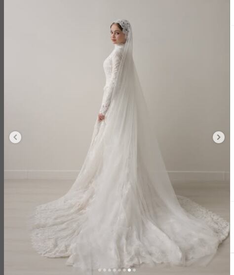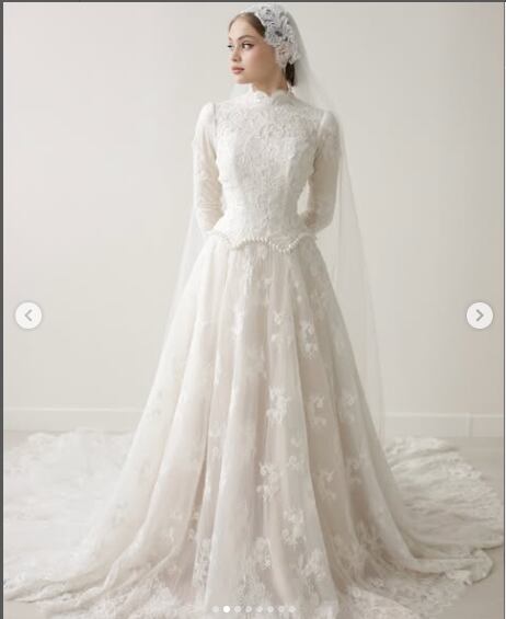 上品!オフホワイト ウエディングドレス 贅沢な総レース 華やかなトレーン前撮り/花嫁/結婚式/披露宴/