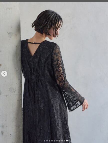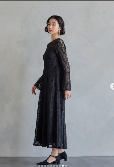 上品! 黒 カラードレス 贅沢な総レース ラッパ袖 ワンピース 前撮り/花嫁/結婚式/披露宴/