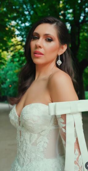 上品!オフホワイト オフショルダー フロントスリット ウエディングドレス 上品花レース 前撮り/花嫁/結婚式/披露宴/