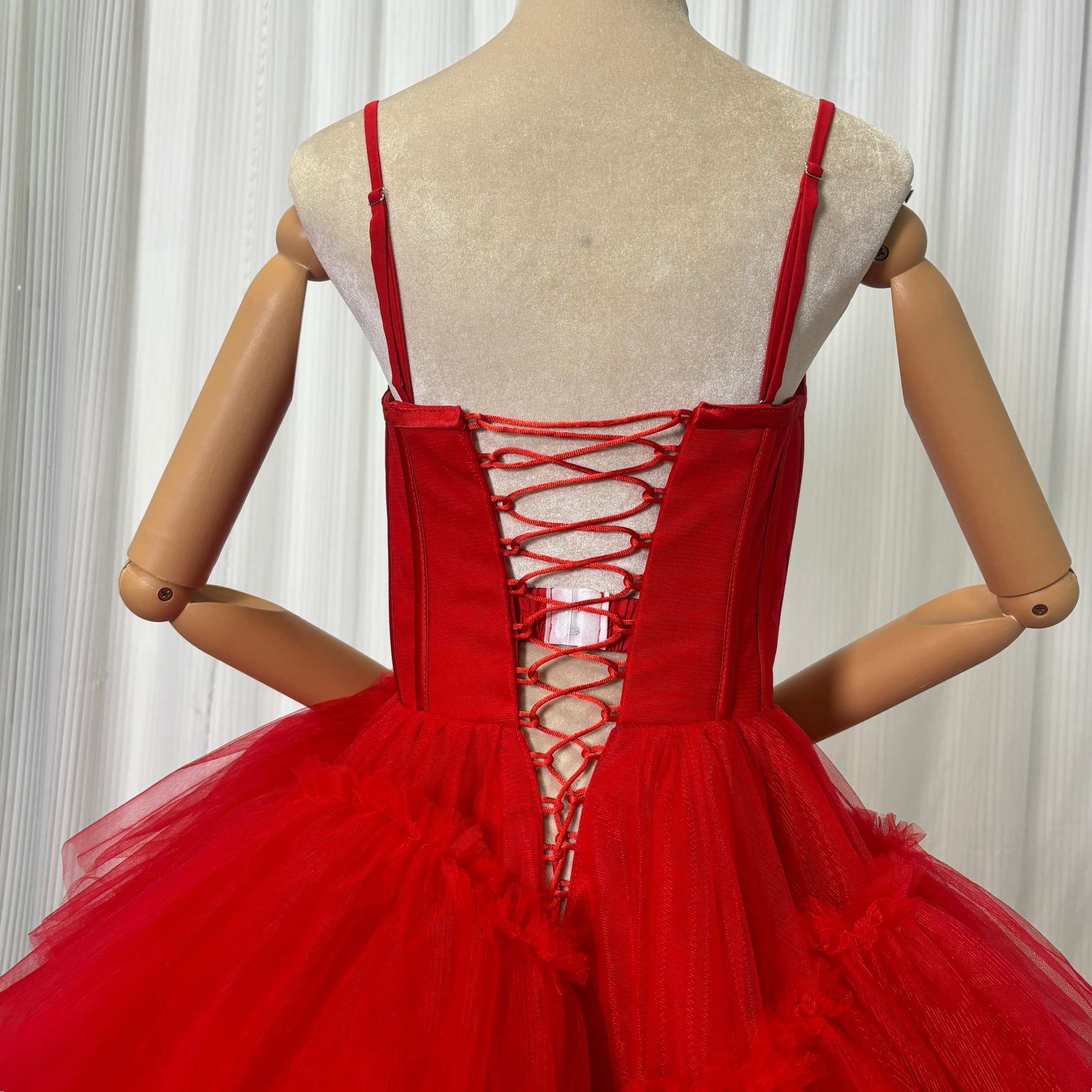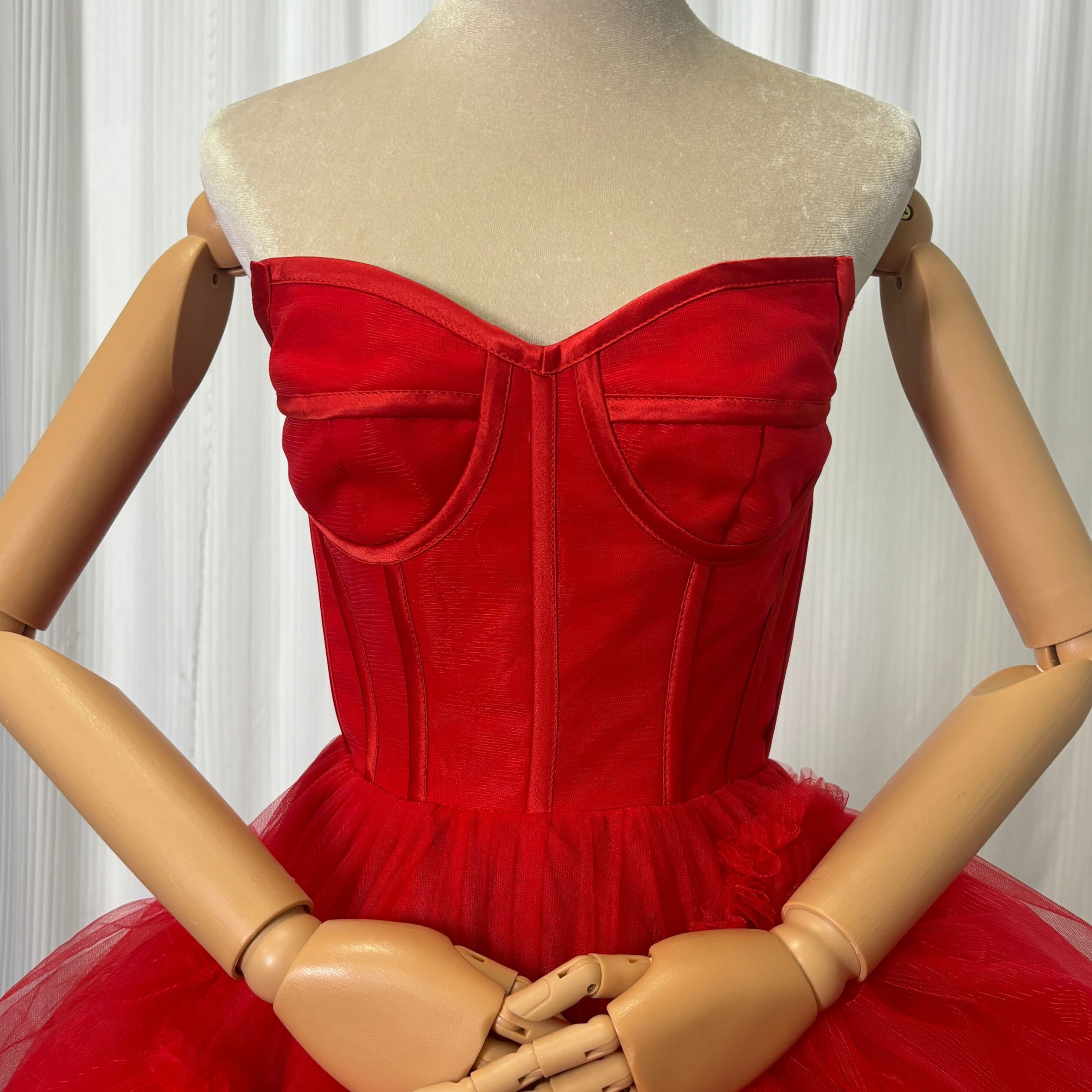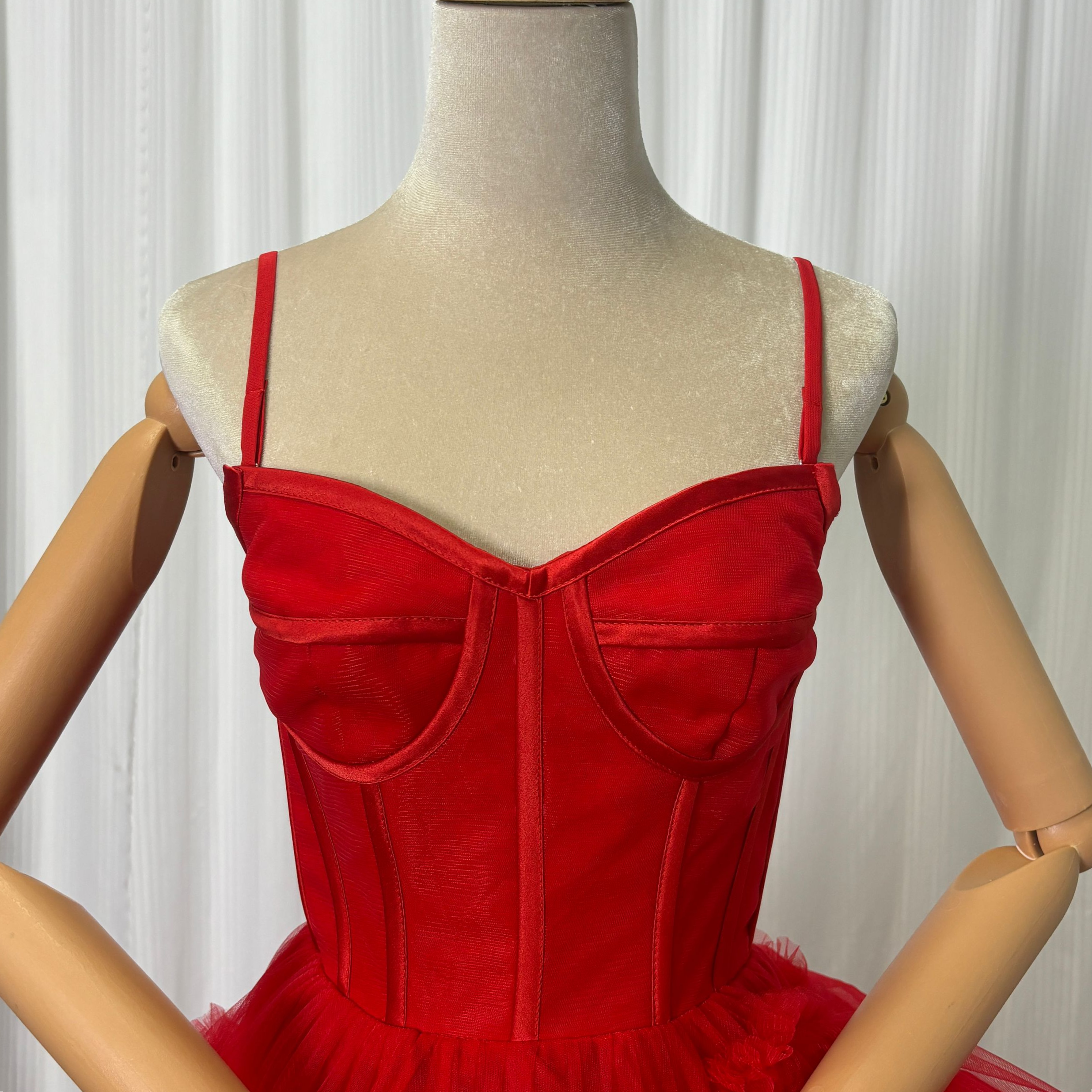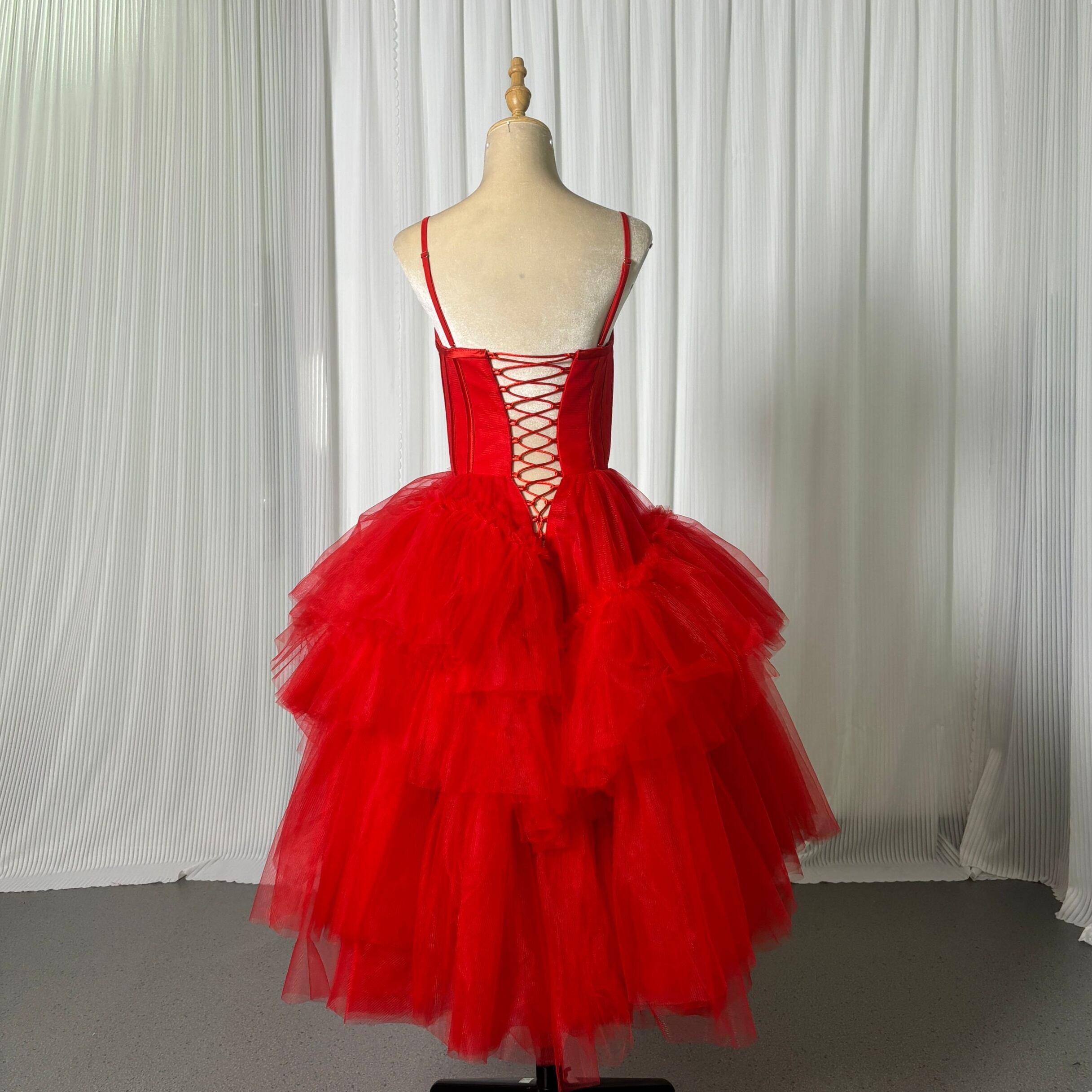 可愛い ワインレッド カラードレス 柔らかく重ねたチュールスカート アシメドレス 花嫁/結婚式/前撮り