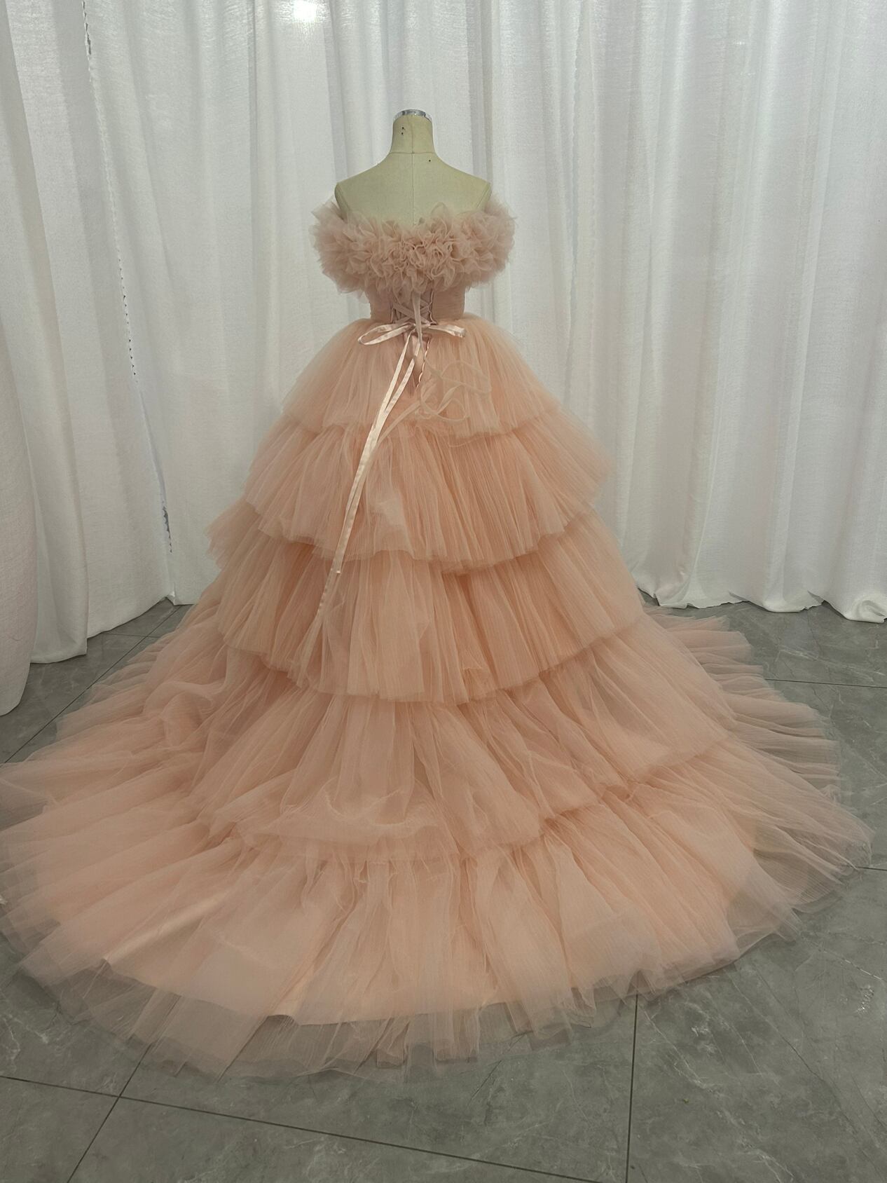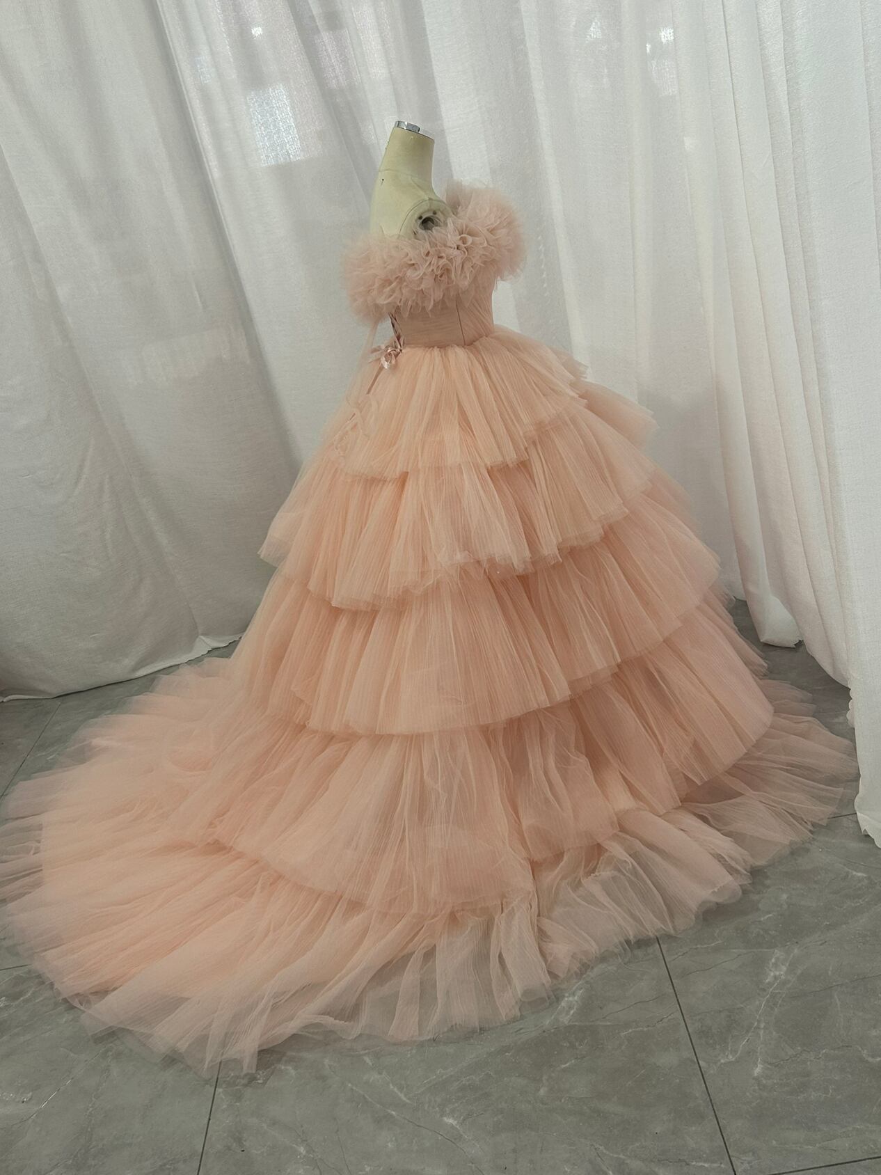 オフショルダー カラードレス 韓国風ドレス チュールドレス もこもこフリルドレス ボリュームドレスボリューミー 前撮り