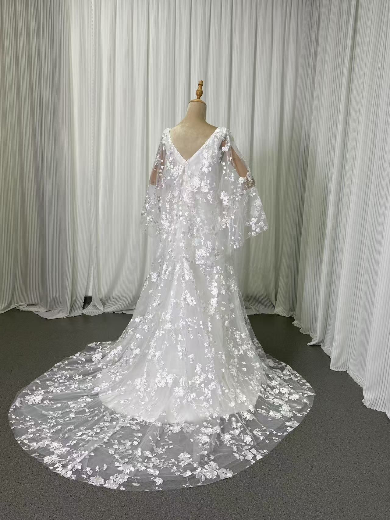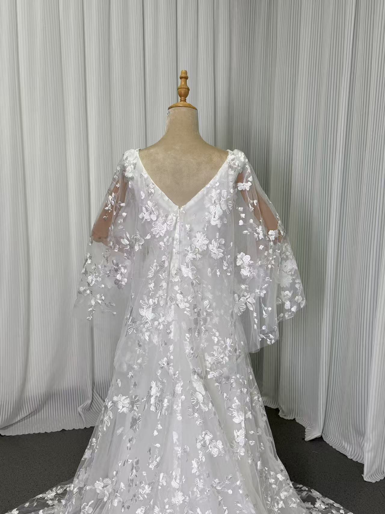 上品! オフホワイト Vネック 3D立体レース刺繍 ウエディングドレス 花嫁/結婚式/披露宴/