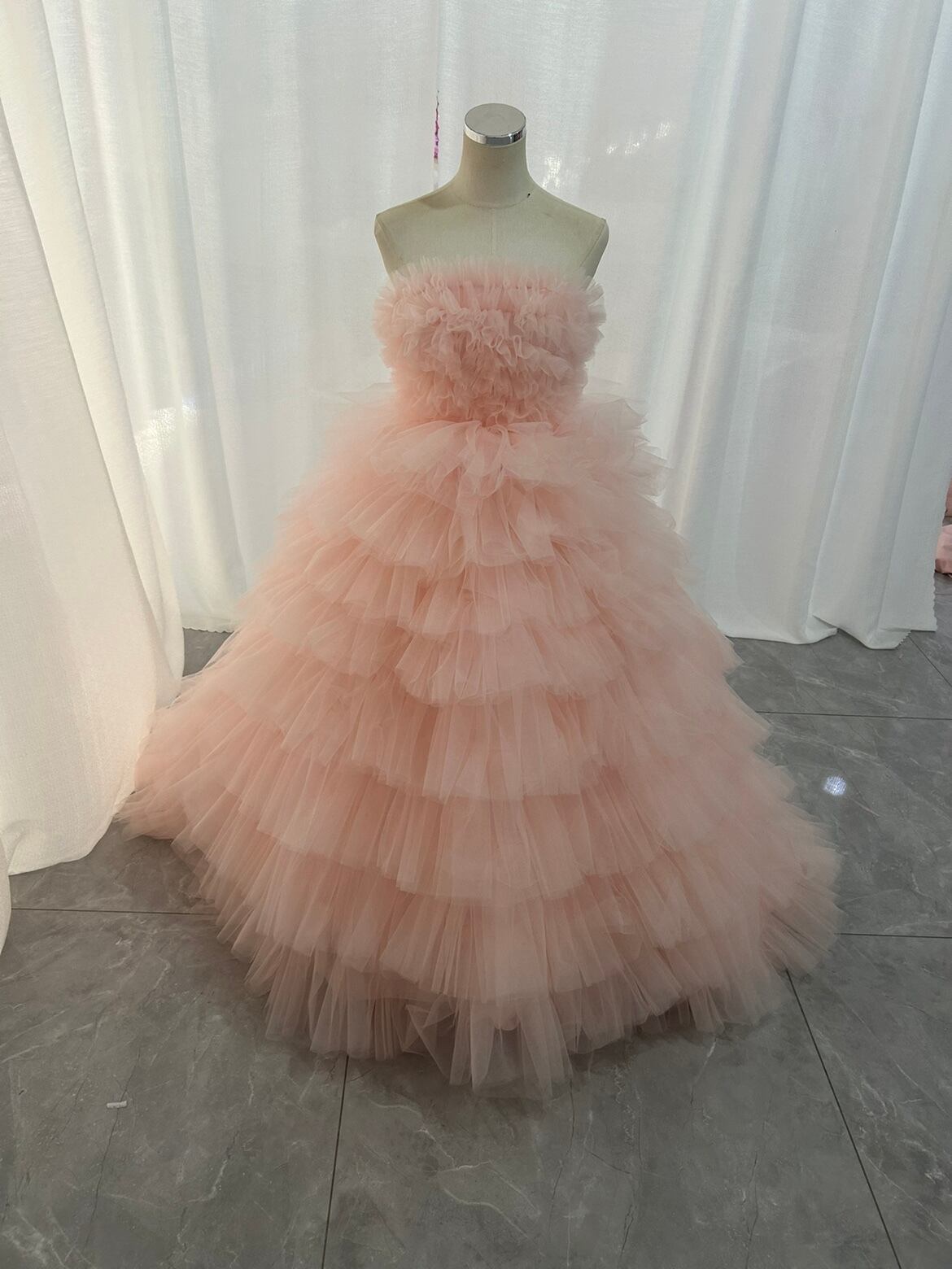 送料無料!カラードレス ソフトチュール もこもこドレス ピンク 素チュール/二次会/挙式/前撮り/結婚式