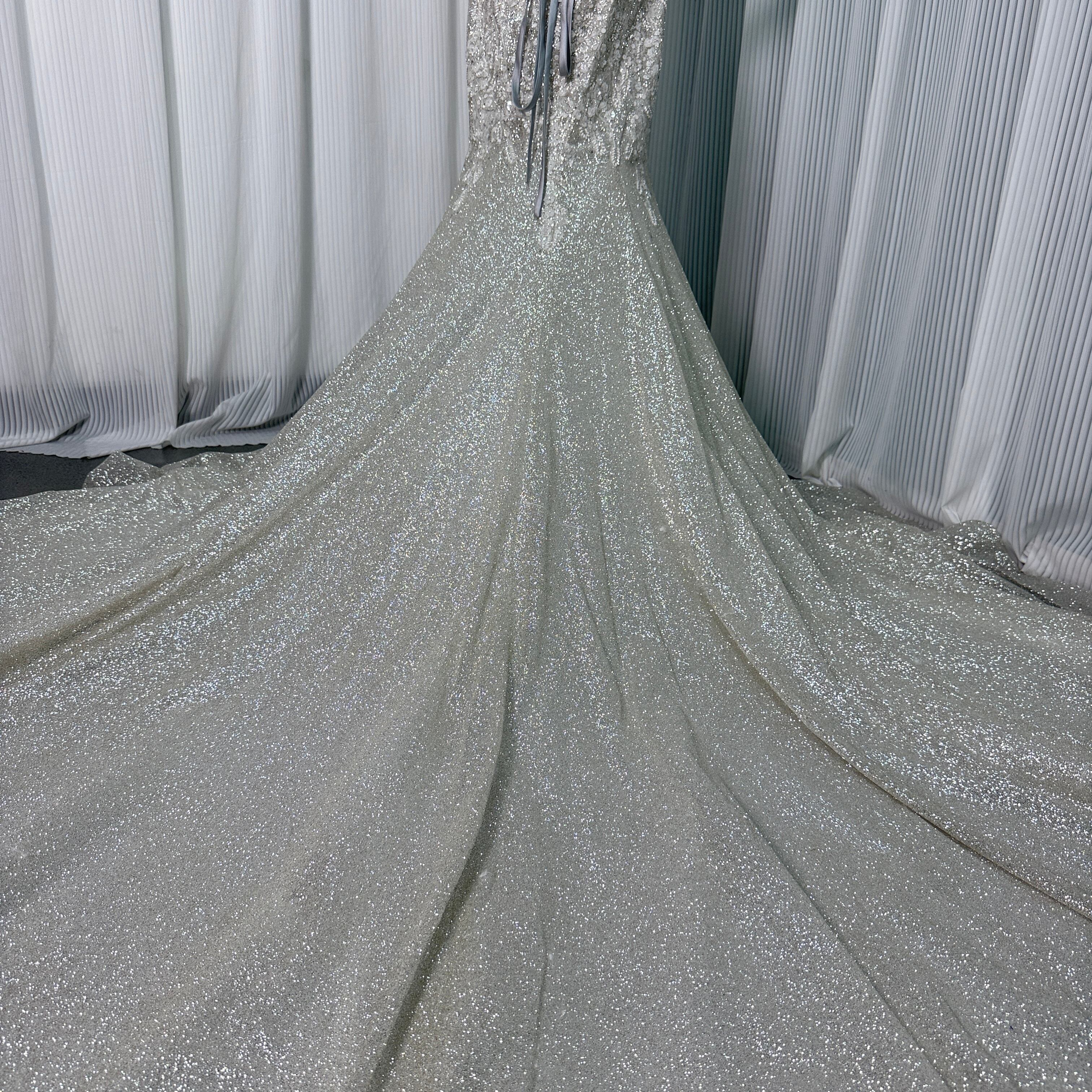韓国風キラキラ ウエディングドレス ビジュードレス グリッターチュール キラキラ刺繍 ソフトマーメイドライン結婚式 前撮り 披露宴
