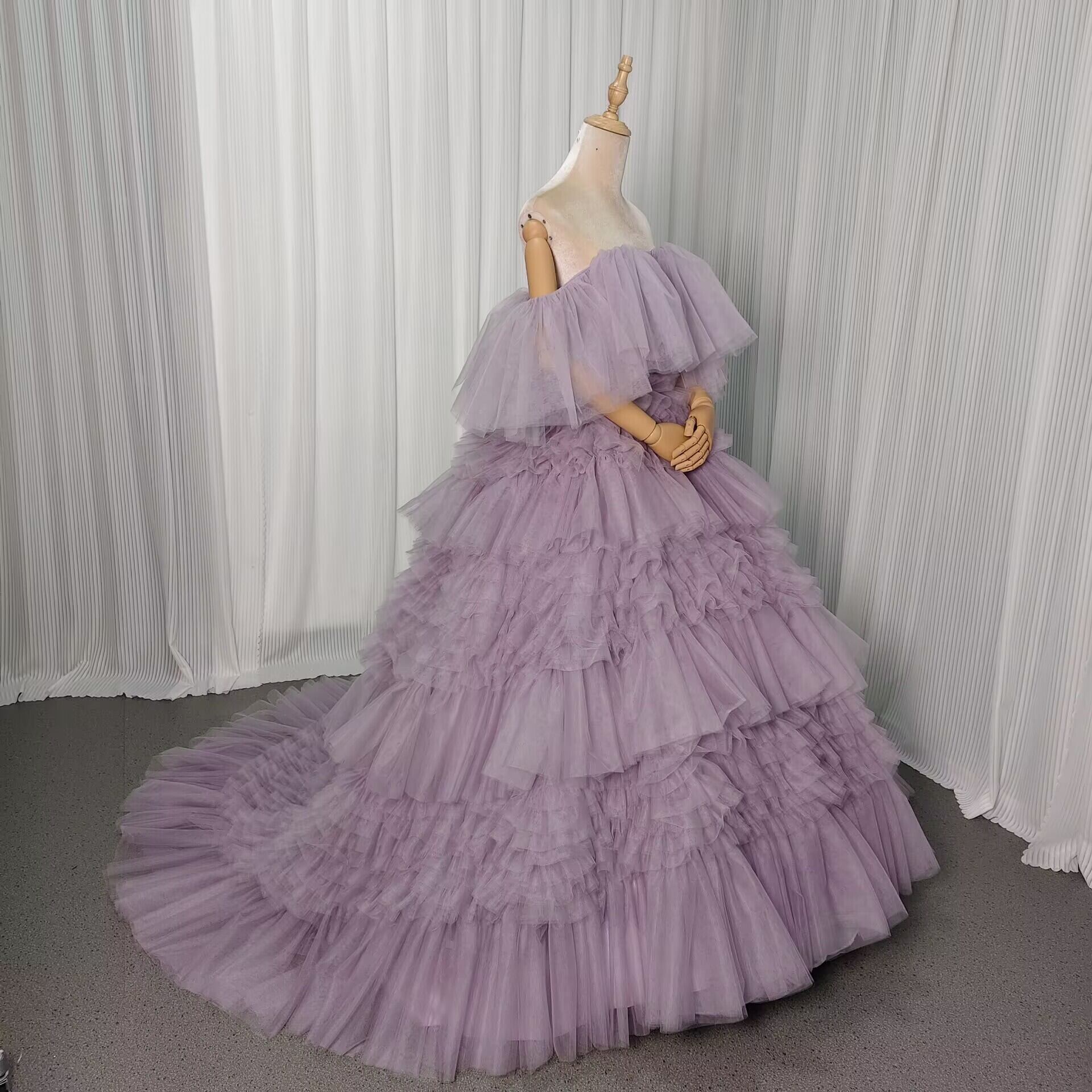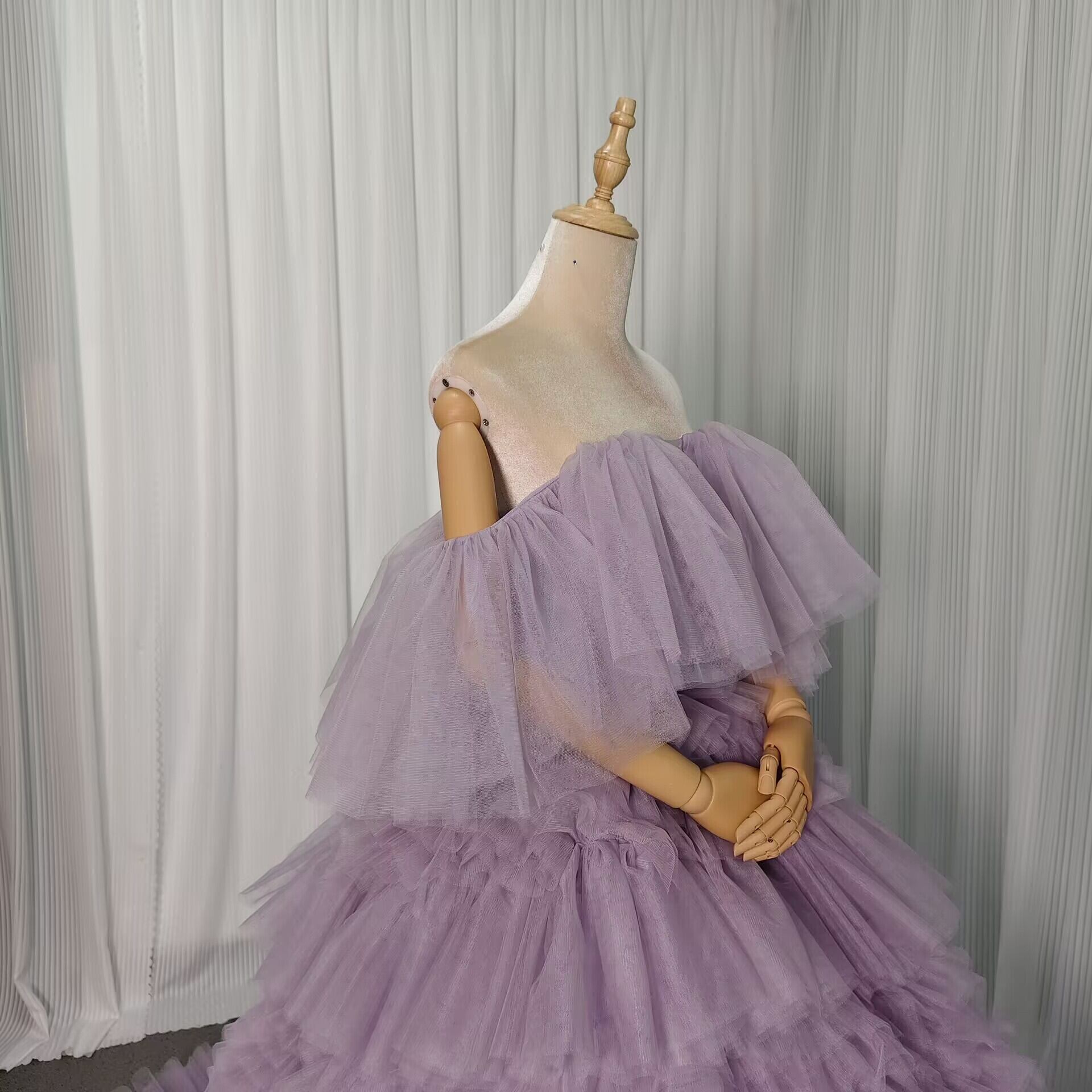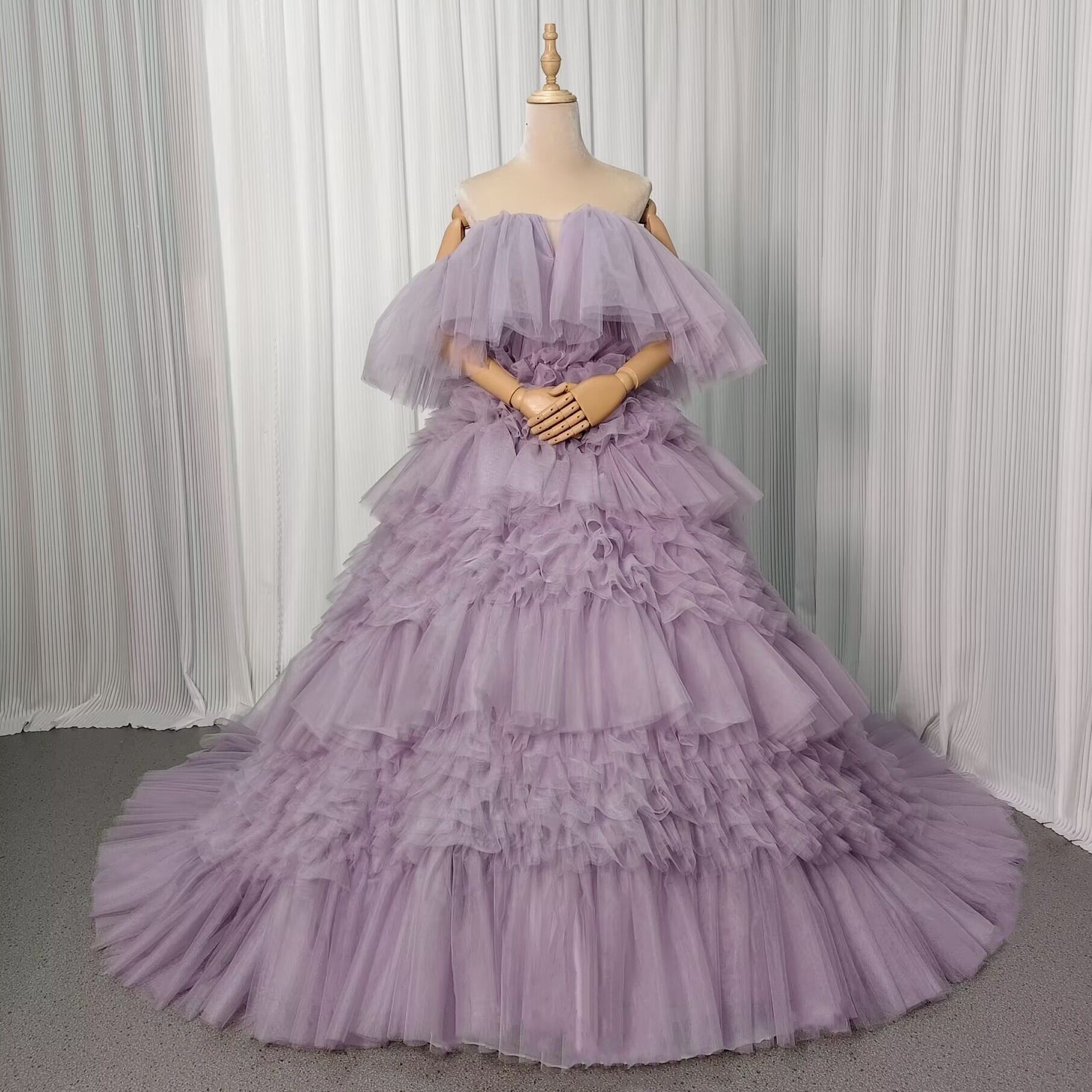 韓国風もこもこ 紫 カラードレス チュールドレス フリルオフショルダー お色直し ふわふわ もこもこドレス