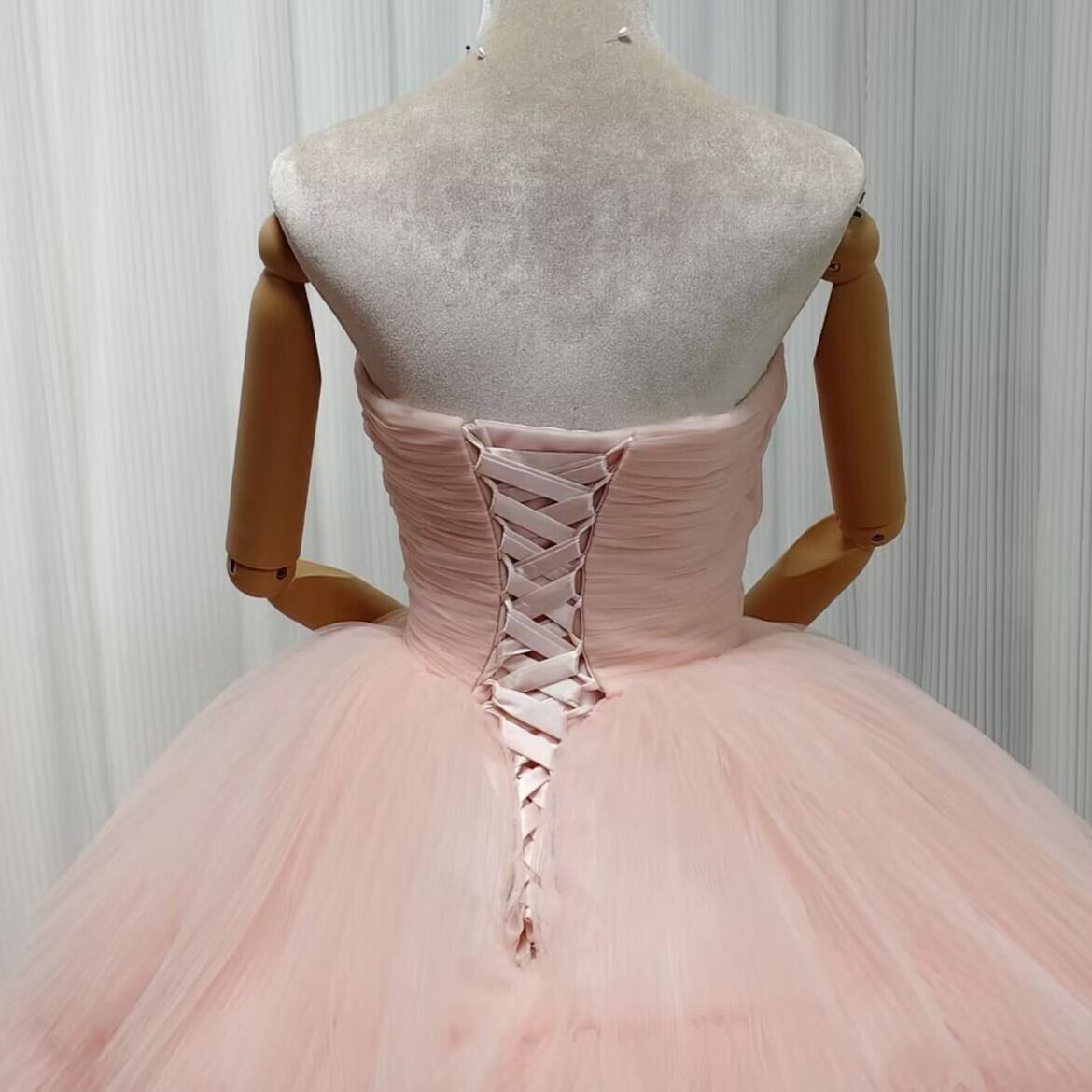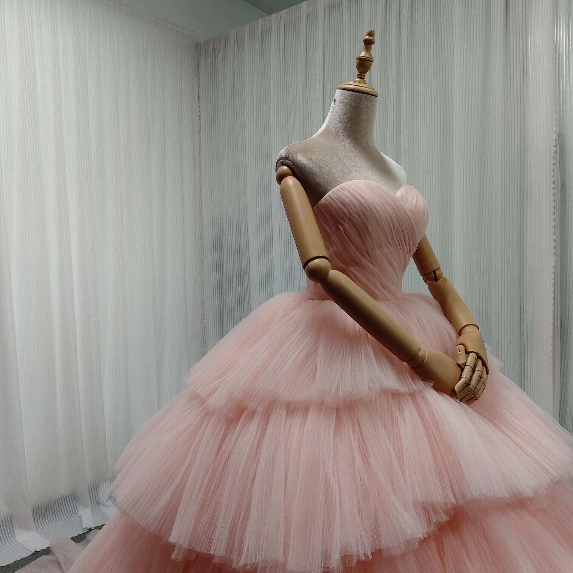 韓国風もこもこ ピンクカラードレス チュールドレス フリルオフショルダー お色直しふわふわ もこもこドレスチュールドレス