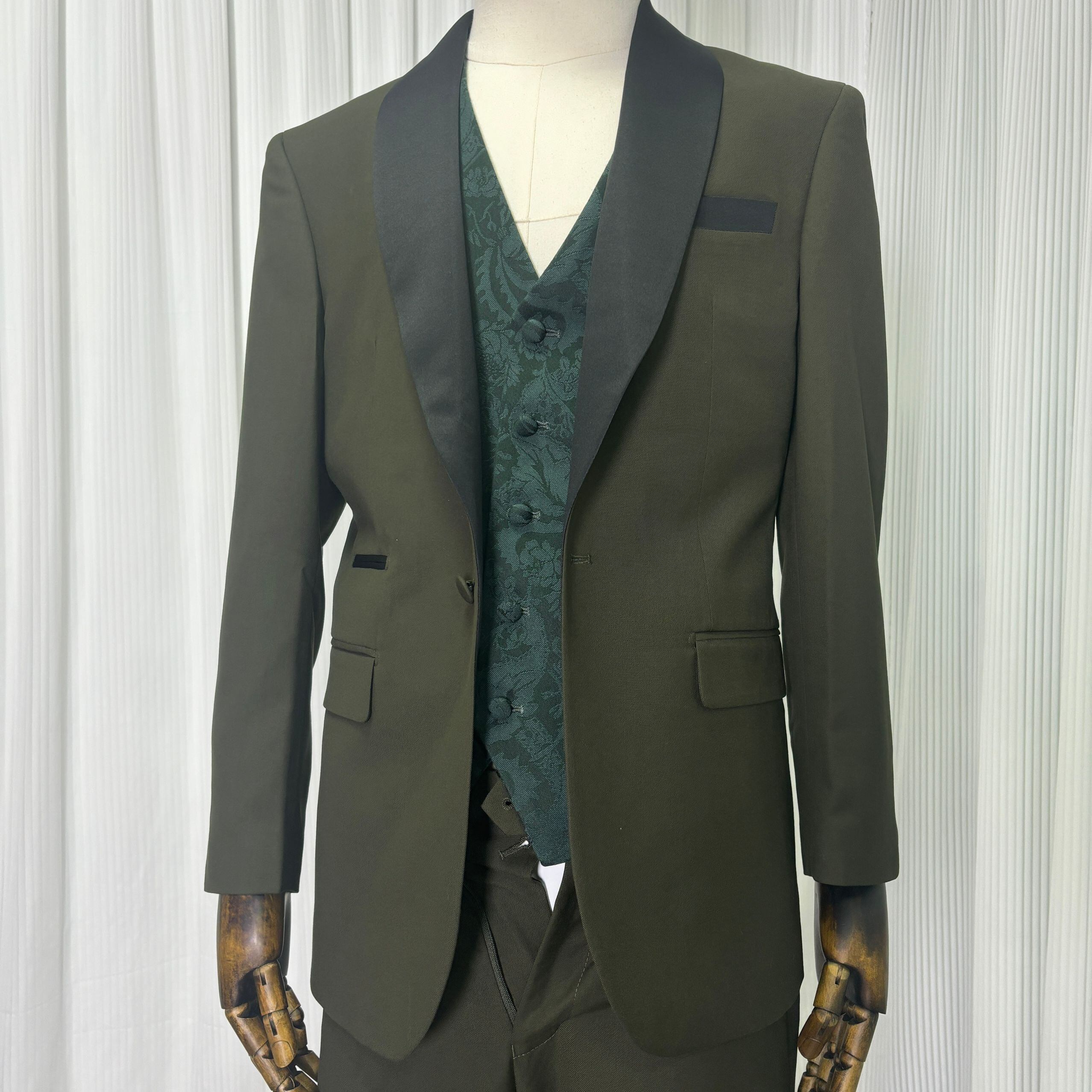 送料無料! オリーブグリーン タキシード ジャケット、ベスト、パンツの3点セット 花嫁/結婚