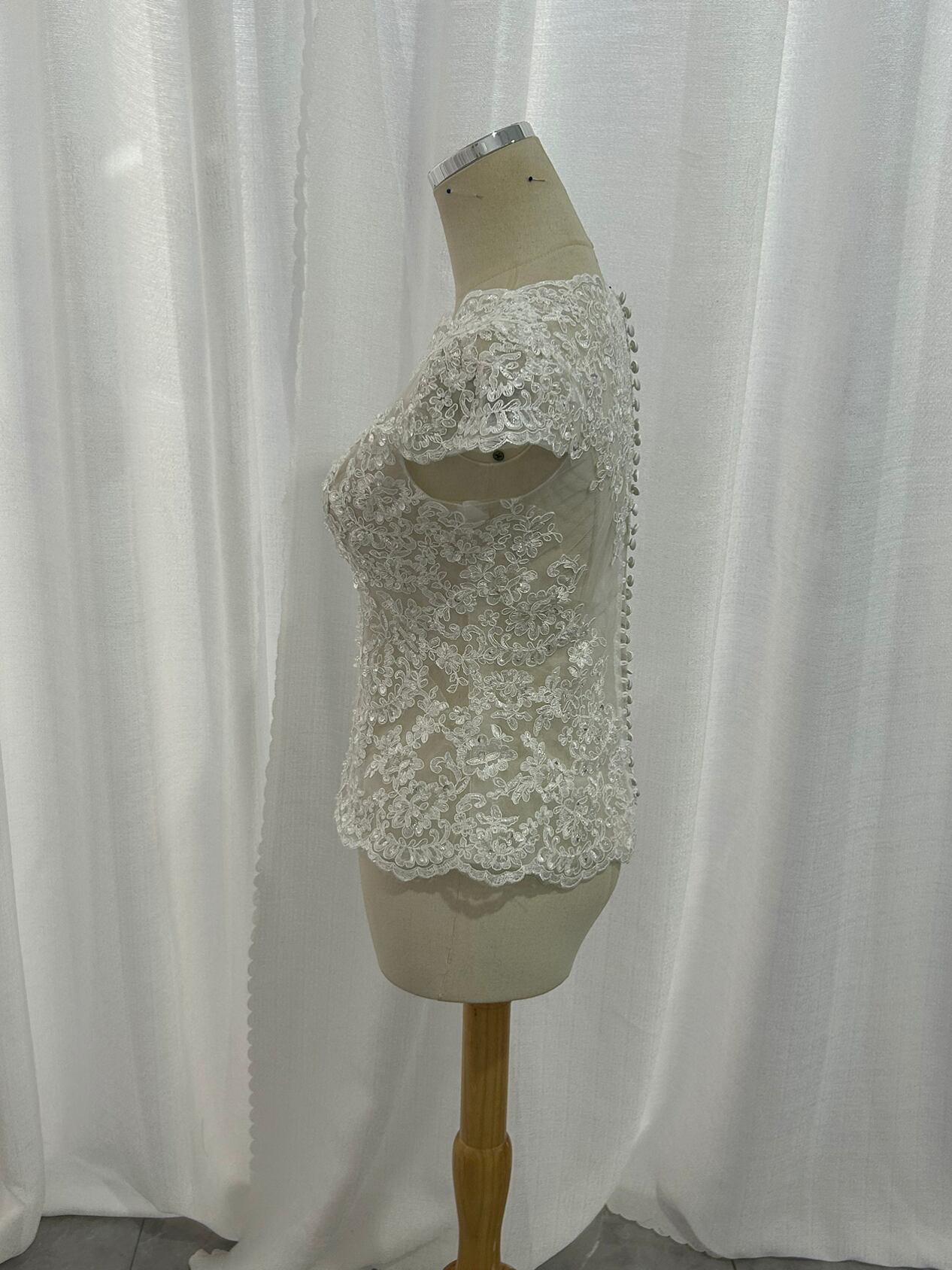 エレガント ウエディングドレス フレンチスリーブ ボレロ レース 結婚式/披露宴 くるみボタン