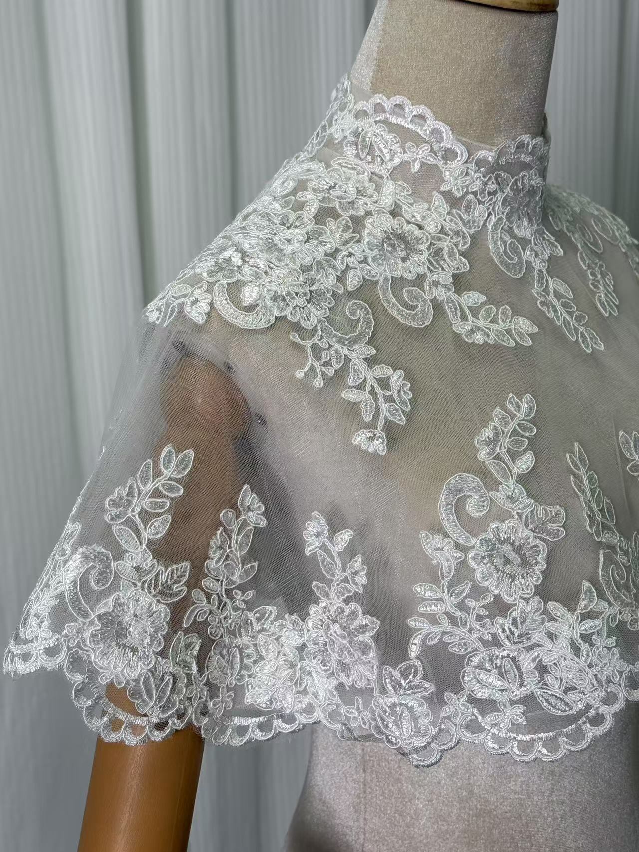 送料無料!グドレスベール 贅沢な総レース ポンチョ 可憐な花刺繍のトップス 花嫁 結婚式 挙式