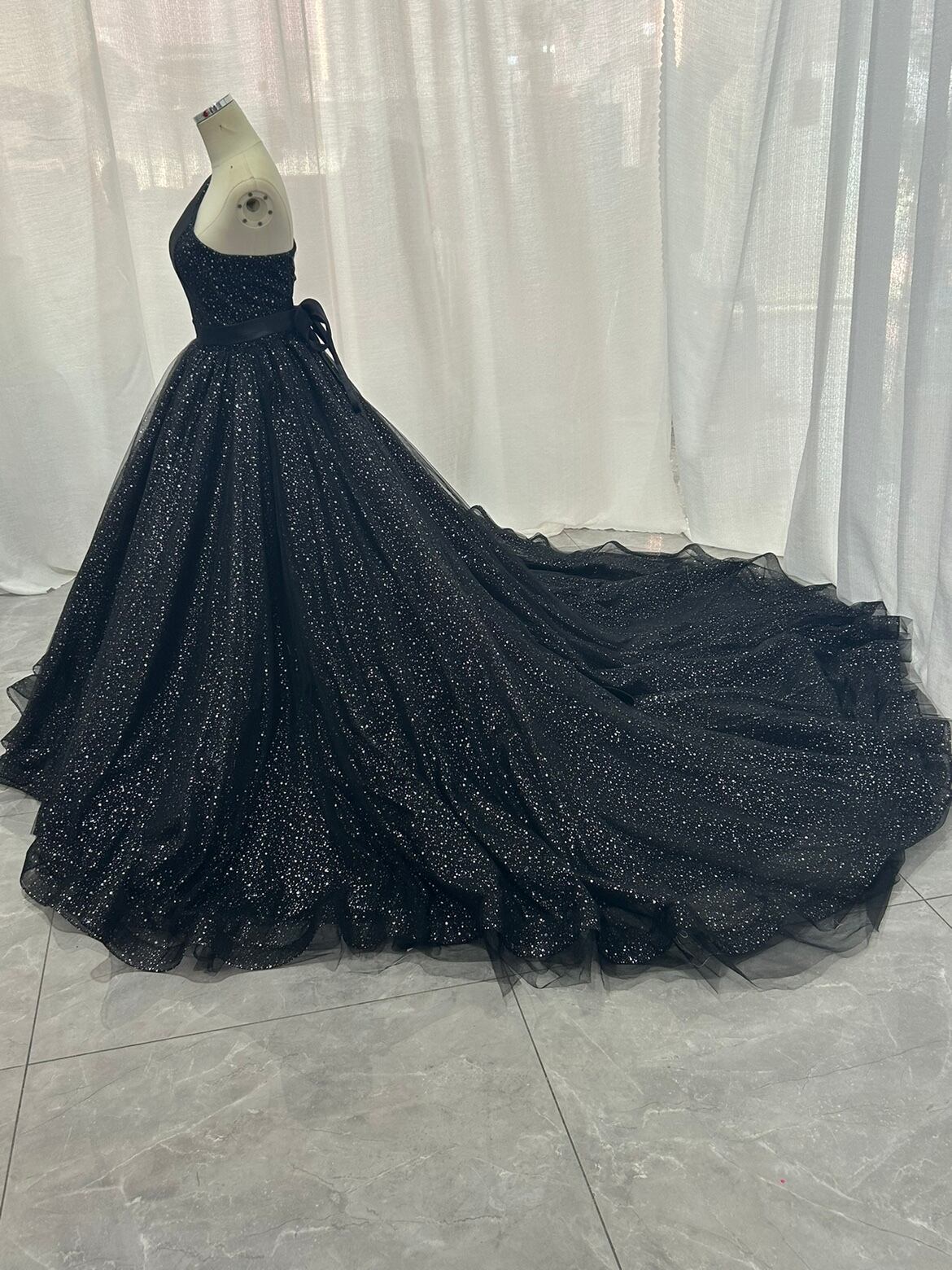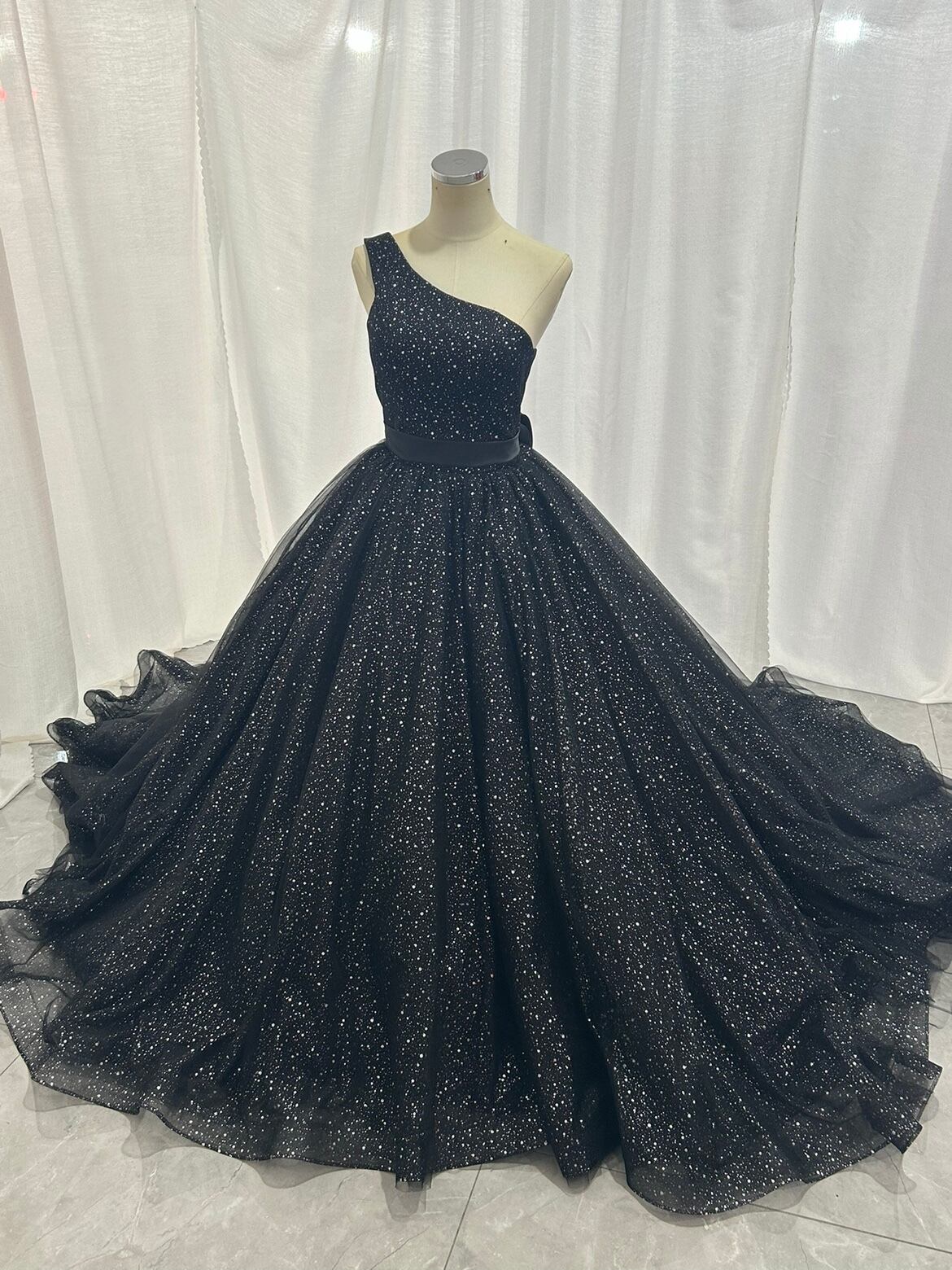 送料無料!高品質! 黒 ワンショルダー キラキラチュール カラードレス パーティードレス 黒 細見えシ