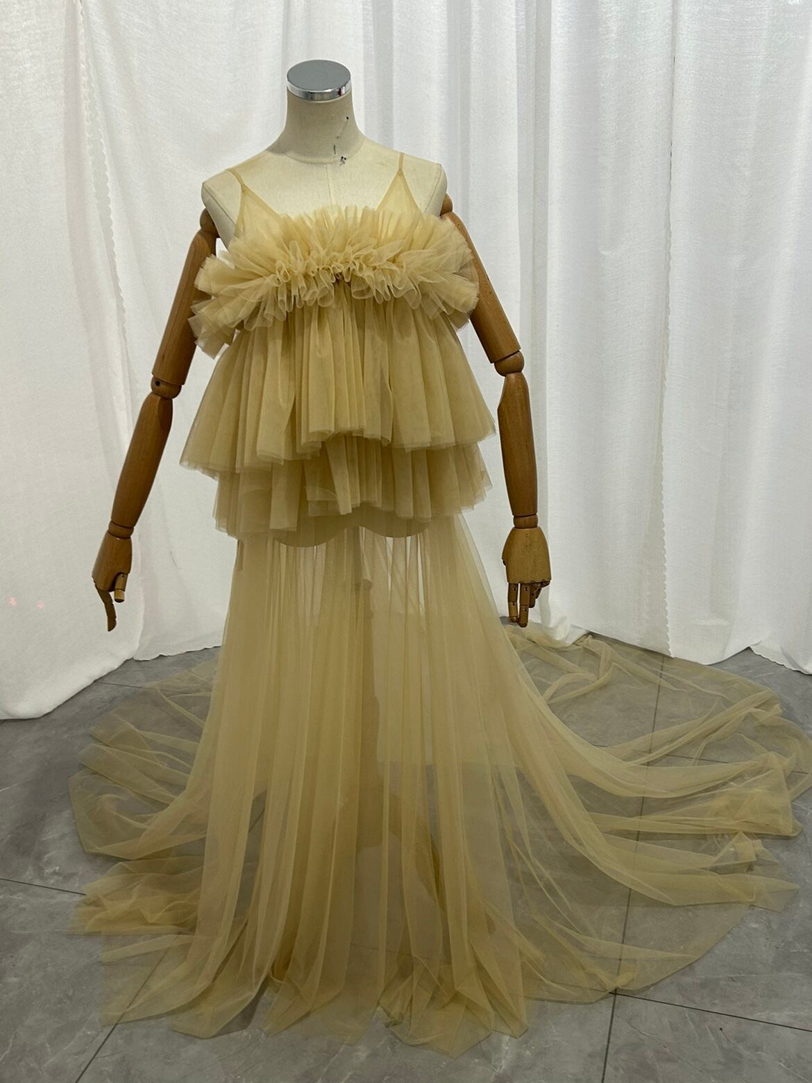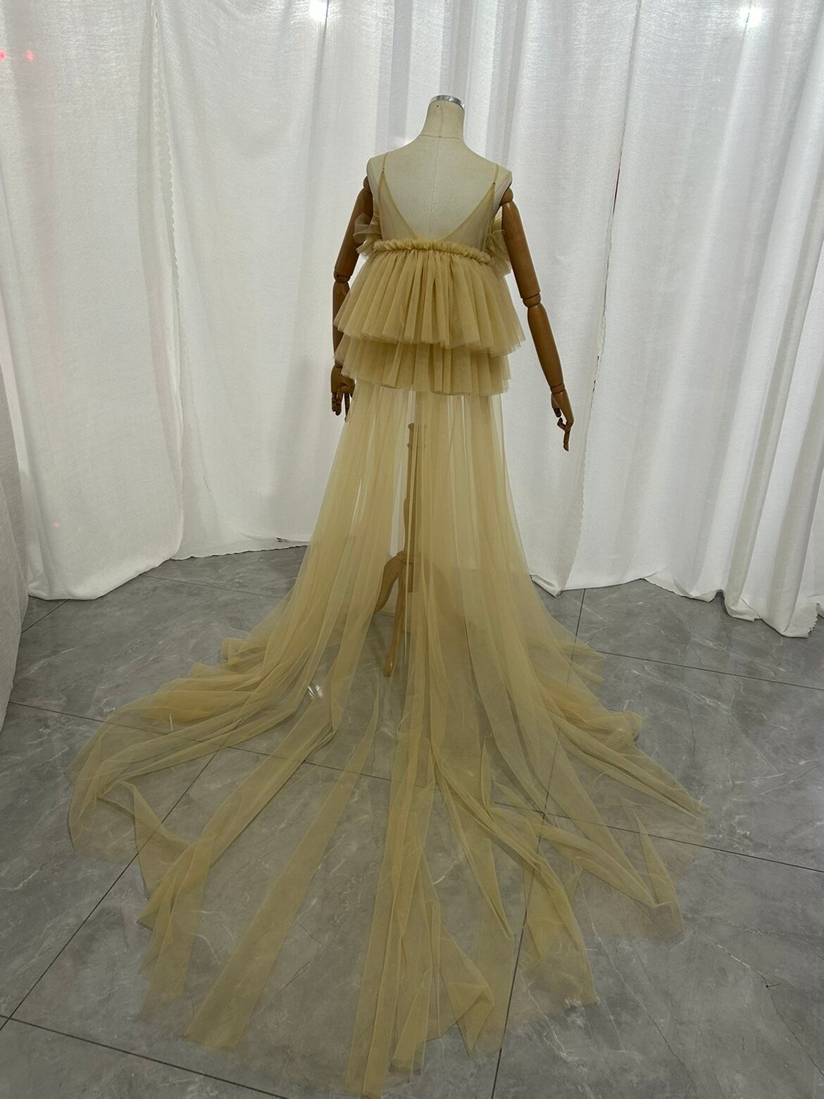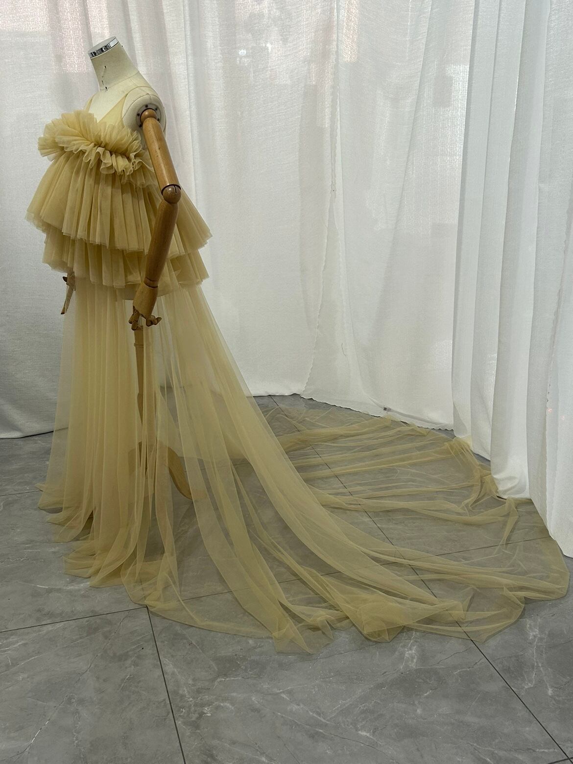 送料無料 !上品!ペールトーンのミント イエロー チュールドレス ソフトチュール カラードレスオーバース