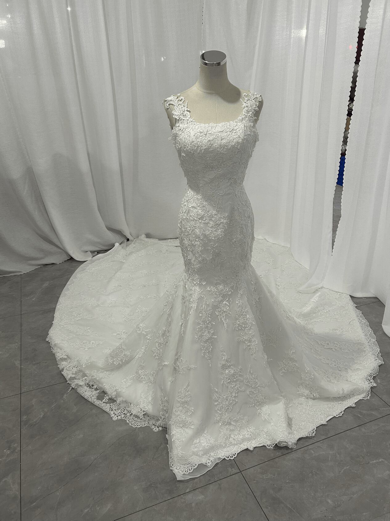 実例写真 !上品! オフホワイト 流れる透け花レース ウエディングドレス 華やかなトレーン マーメイドライン花嫁/結婚式/披露宴/