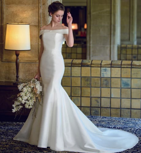 雅やか オフショルダー ウエディングドレス 取り外し袖ソフトマーメイドライン  結婚式 前撮り 披露宴