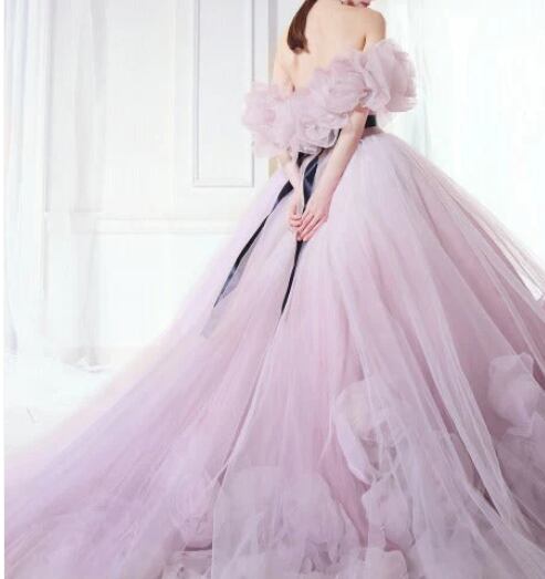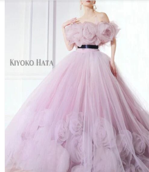 上品 紫 オフショルダー カラードレス 魅惑の花レース ソフトチュール 2次会 花嫁 挙式