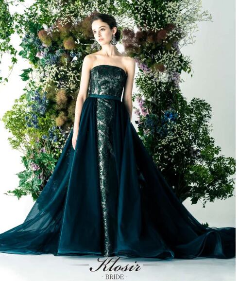 輝きな光彩を放つ ネイビー ベアトップ カラードレス ソフトチュール 2次会 花嫁 挙式