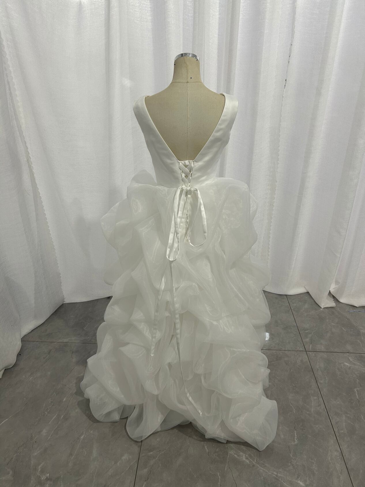 新作!ウエディングドレス フィッシュテール ふわふわバルーンスカート ボリュームドレス ノースリーブ