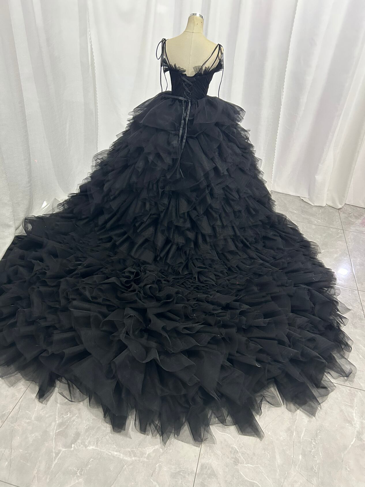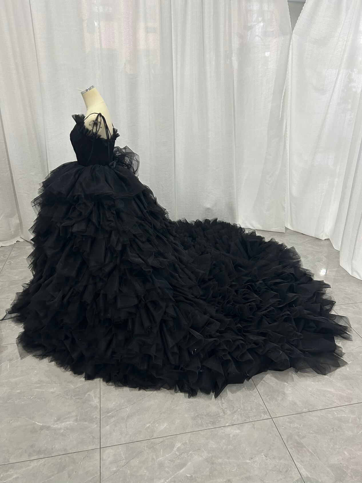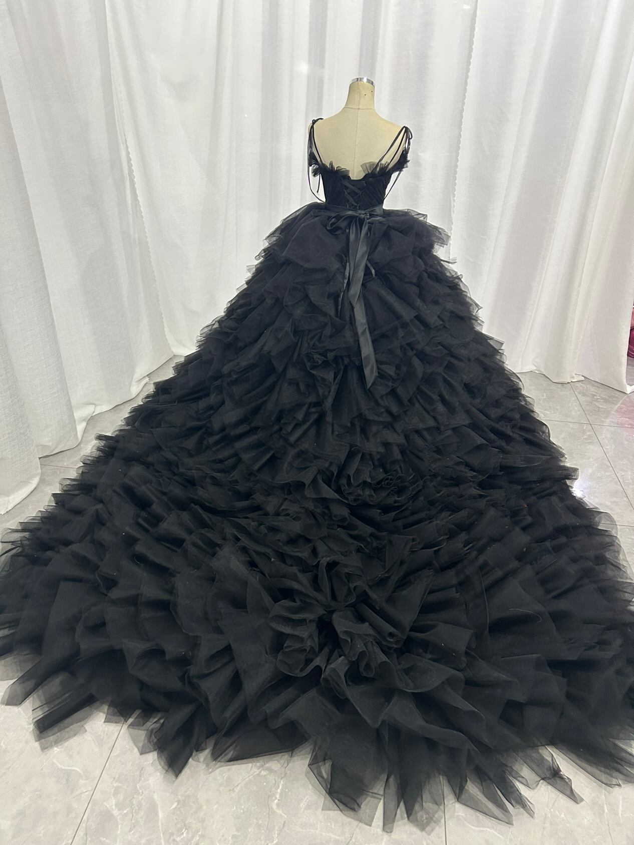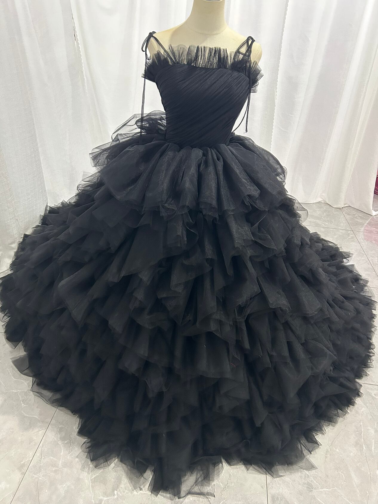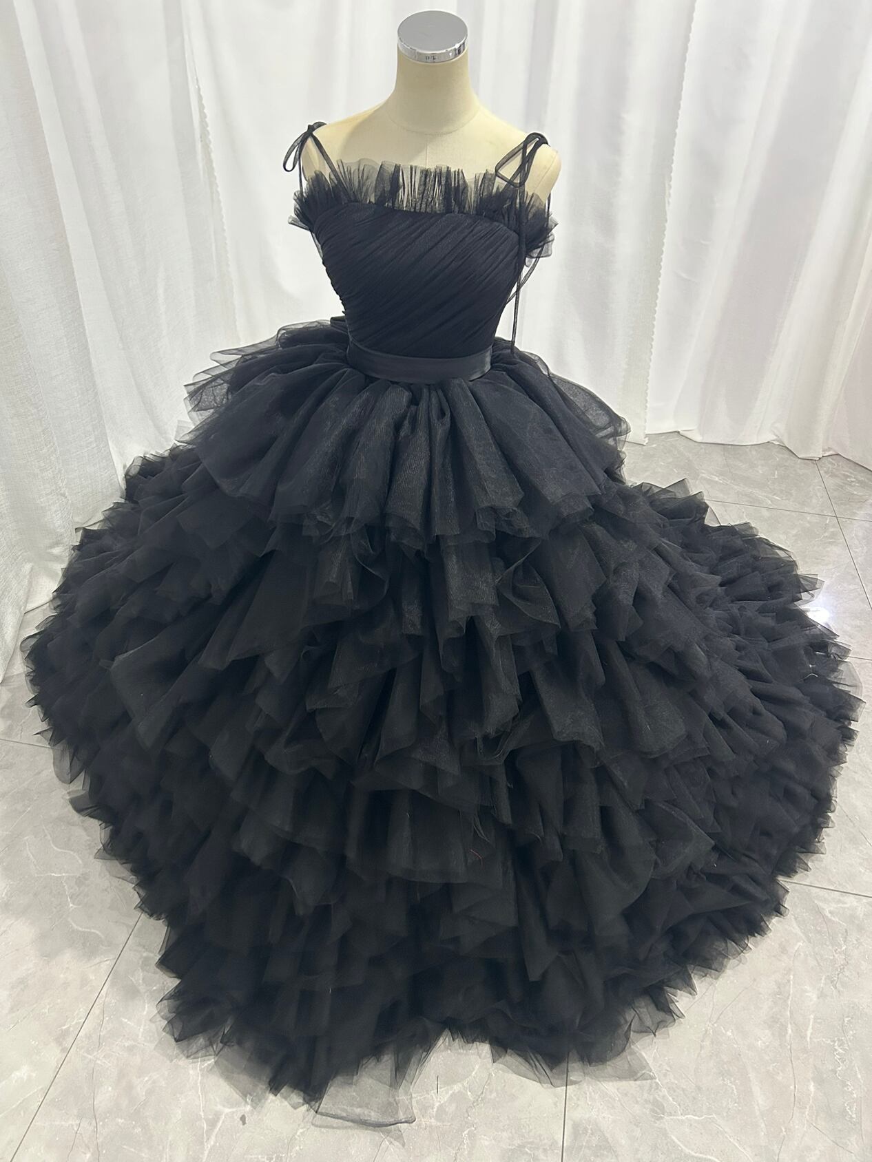 黒 ベアトップ カラードレス クリームイエロー韓国風ドレス チュールドレス もこもこフリルドレス ボリュー結婚式