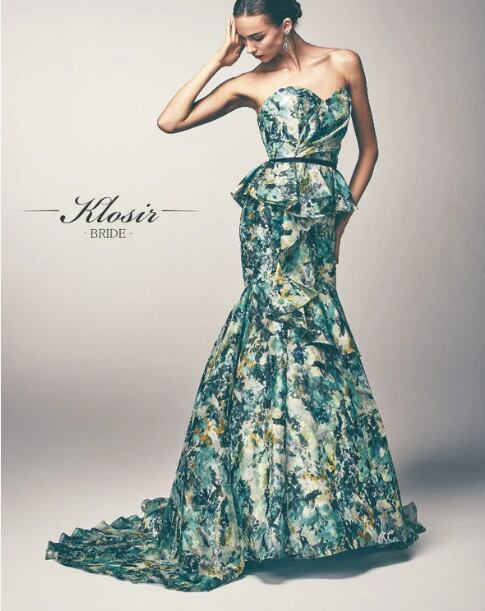 上品 ベアトップ 贅沢な総レース カラードレス マーメイドライン 2次会 花嫁 挙式