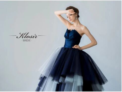 上品 グレー ネイビー ベアトップ カラードレス ソフトチュール 柔らかく重ねたチュールスカート2次会 花嫁 挙式