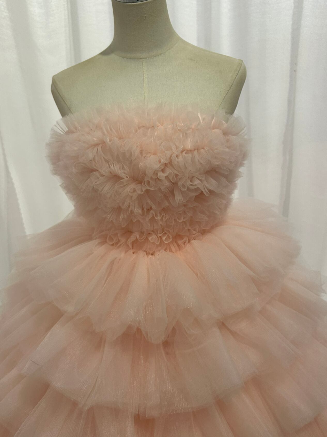 送料無料!カラードレス ソフトチュール もこもこドレス ピンク 素チュール/二次会/挙式/前撮り/結婚式
