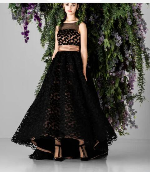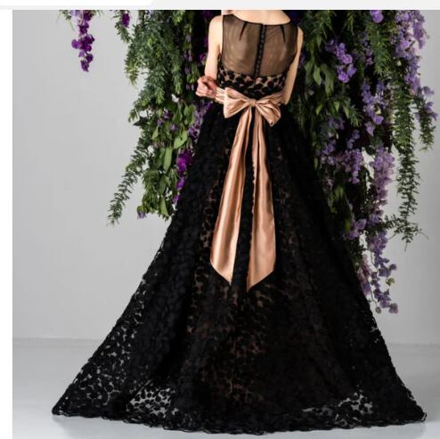 黒 贅沢な総レース カラードレス クリームイエロー チュールドレス ボリュー結婚式