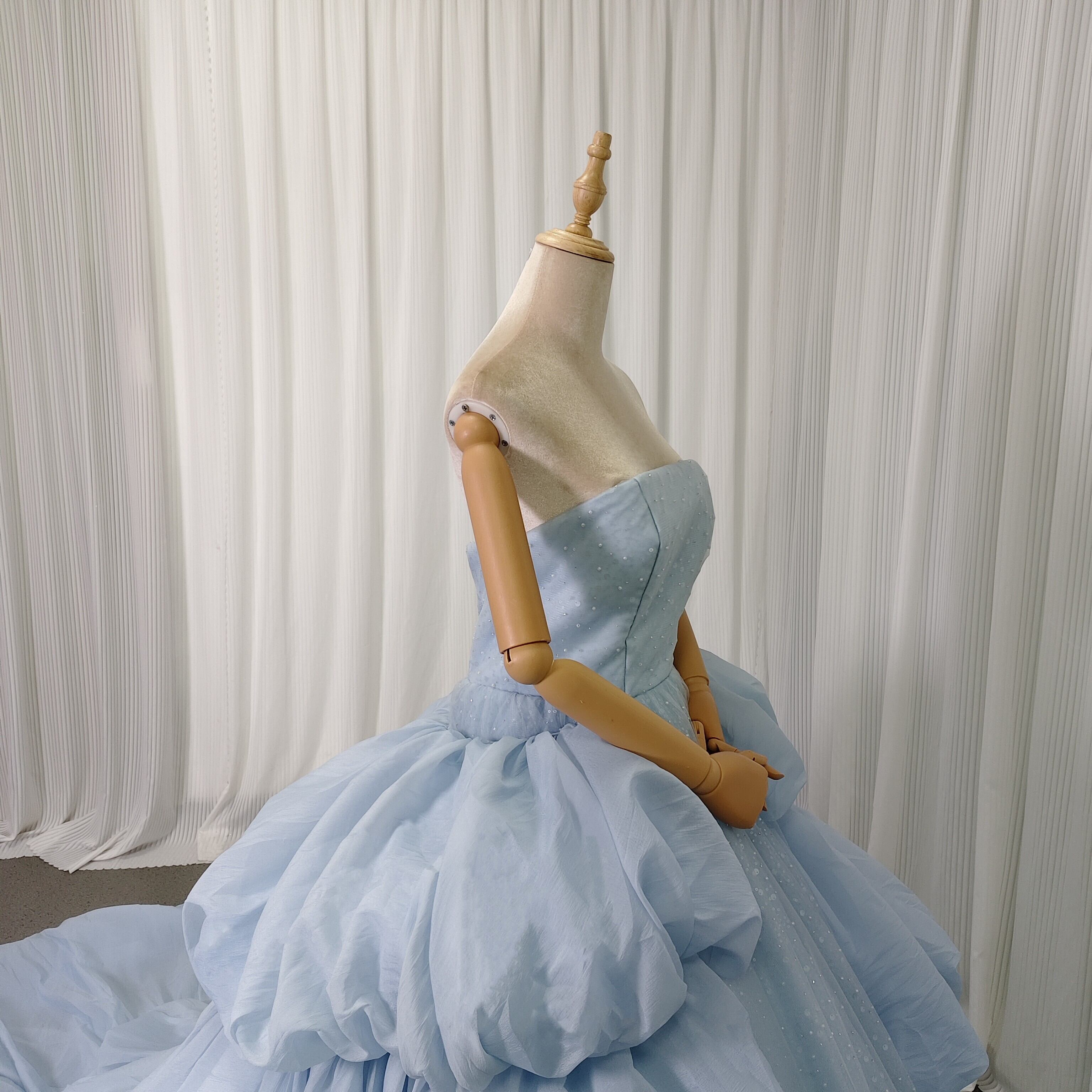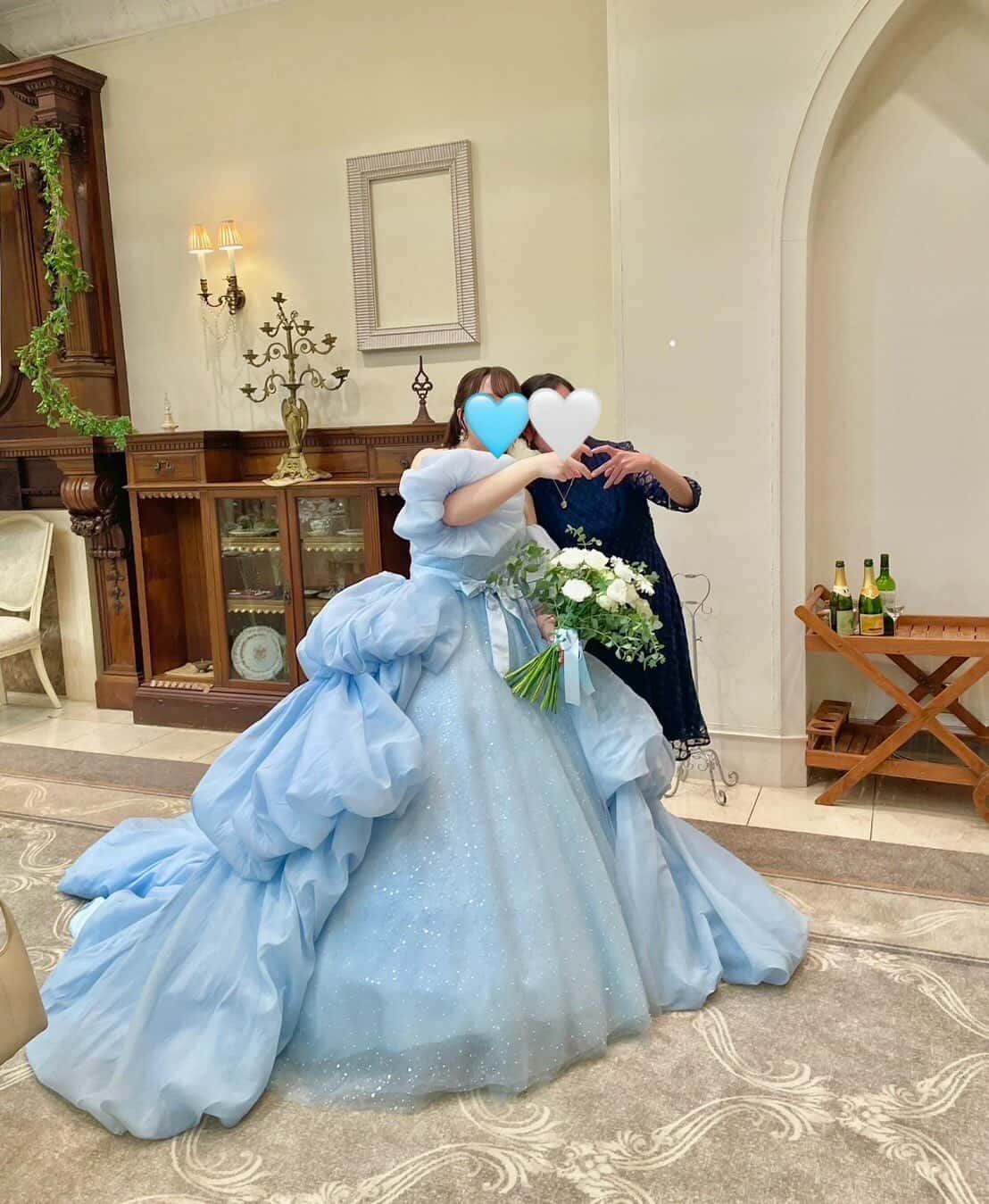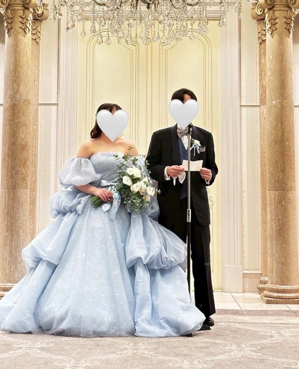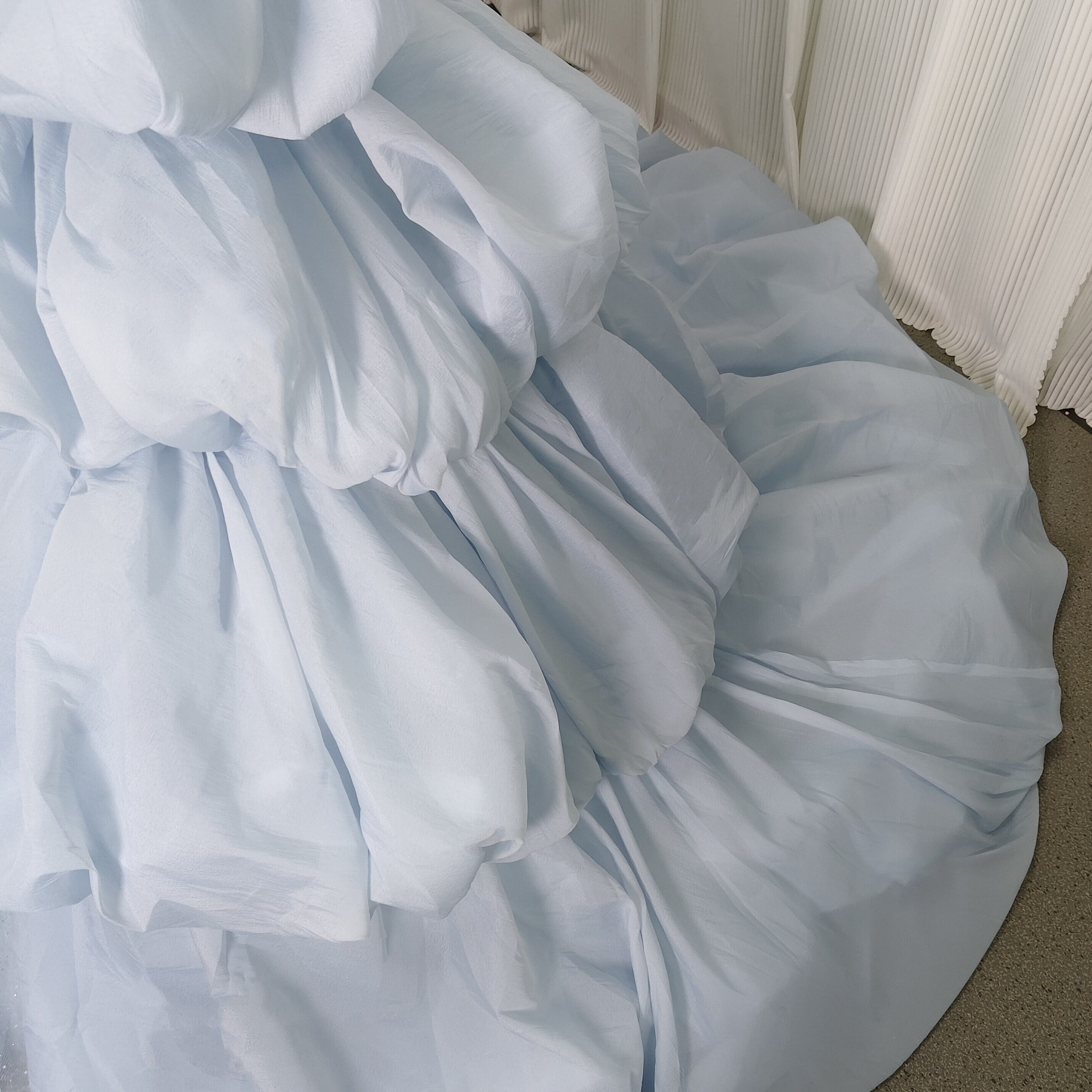 実例写真 !3waysカラードレス ブルーグレーキラキラチュール ふわふわオーバースカート サッシュベルト 結婚式 披露宴