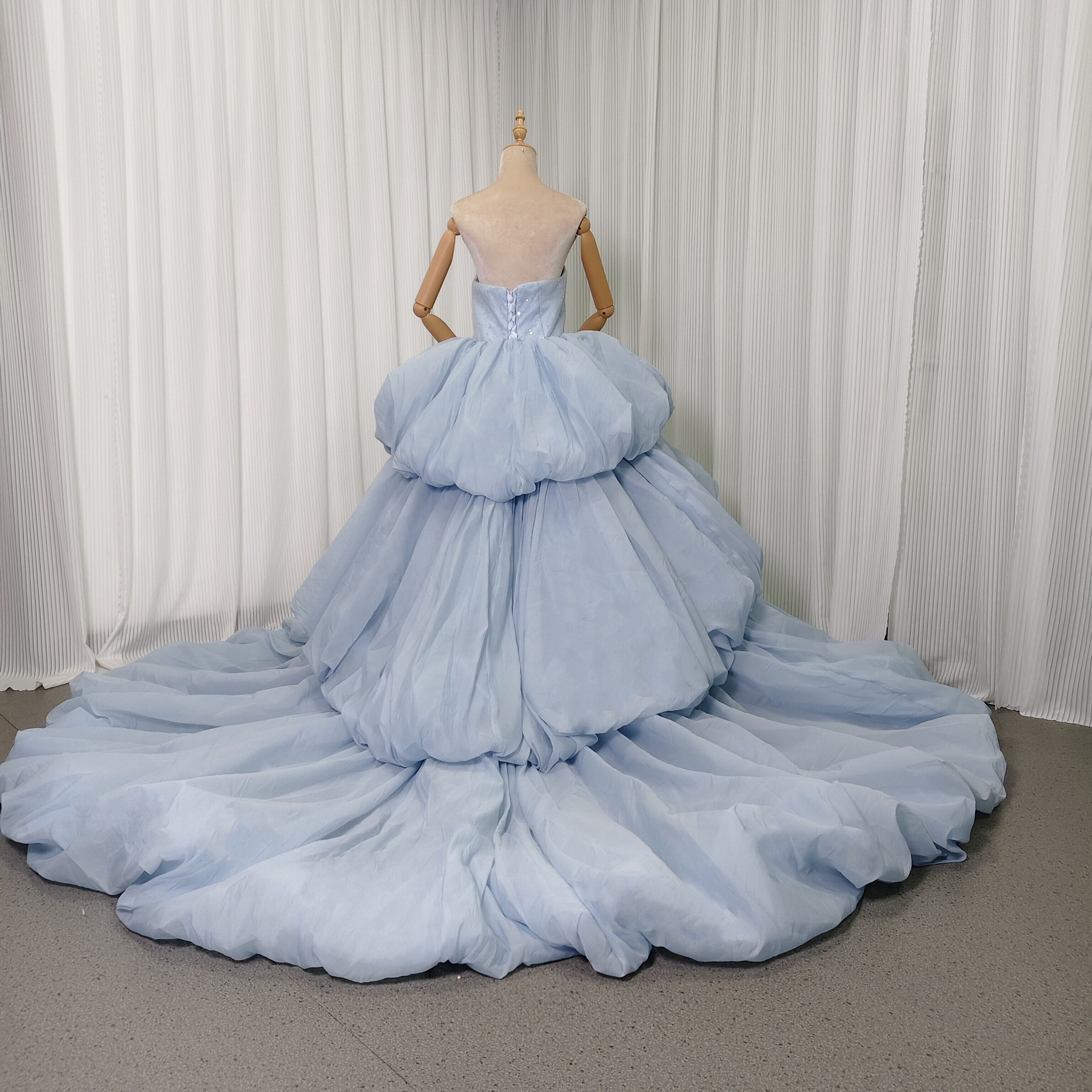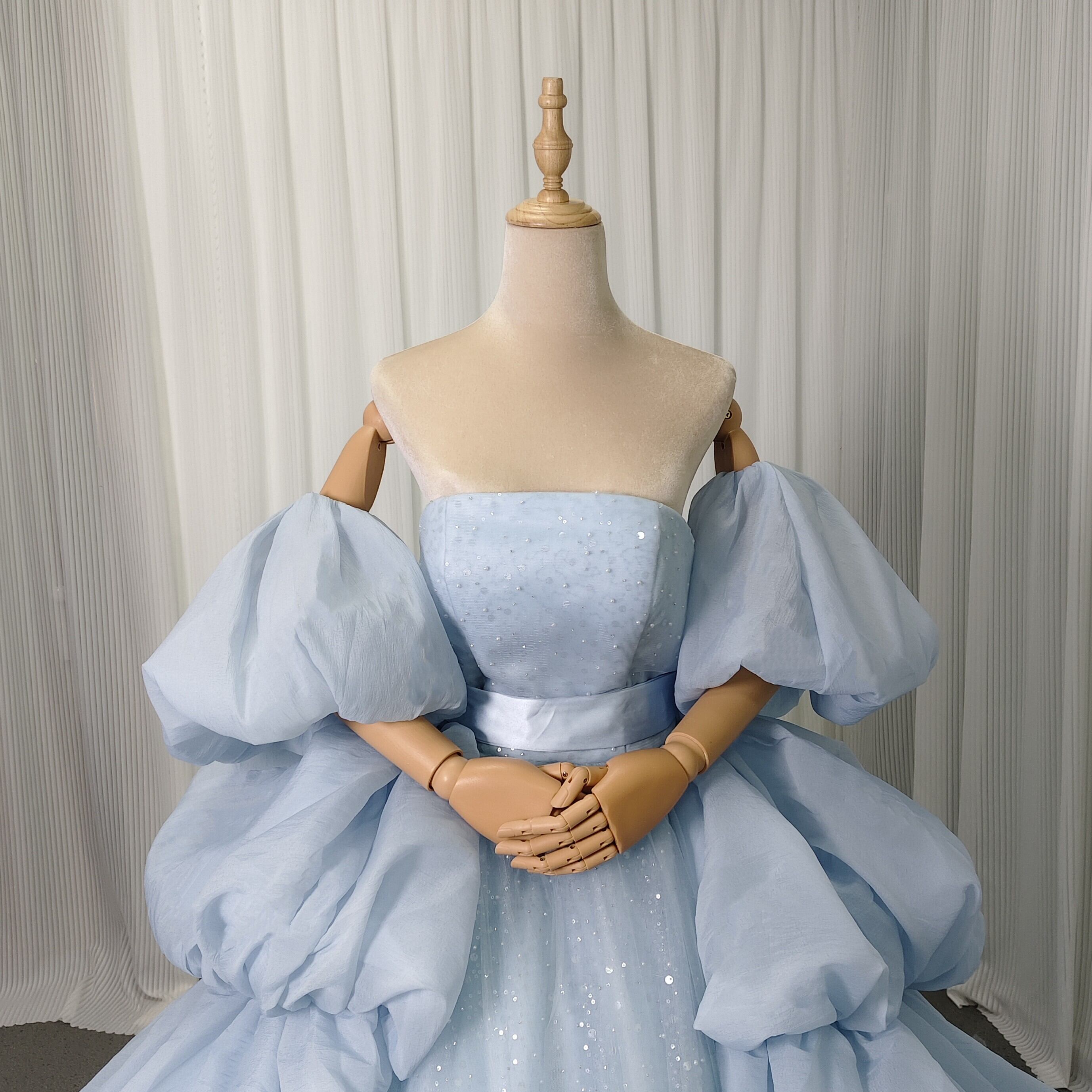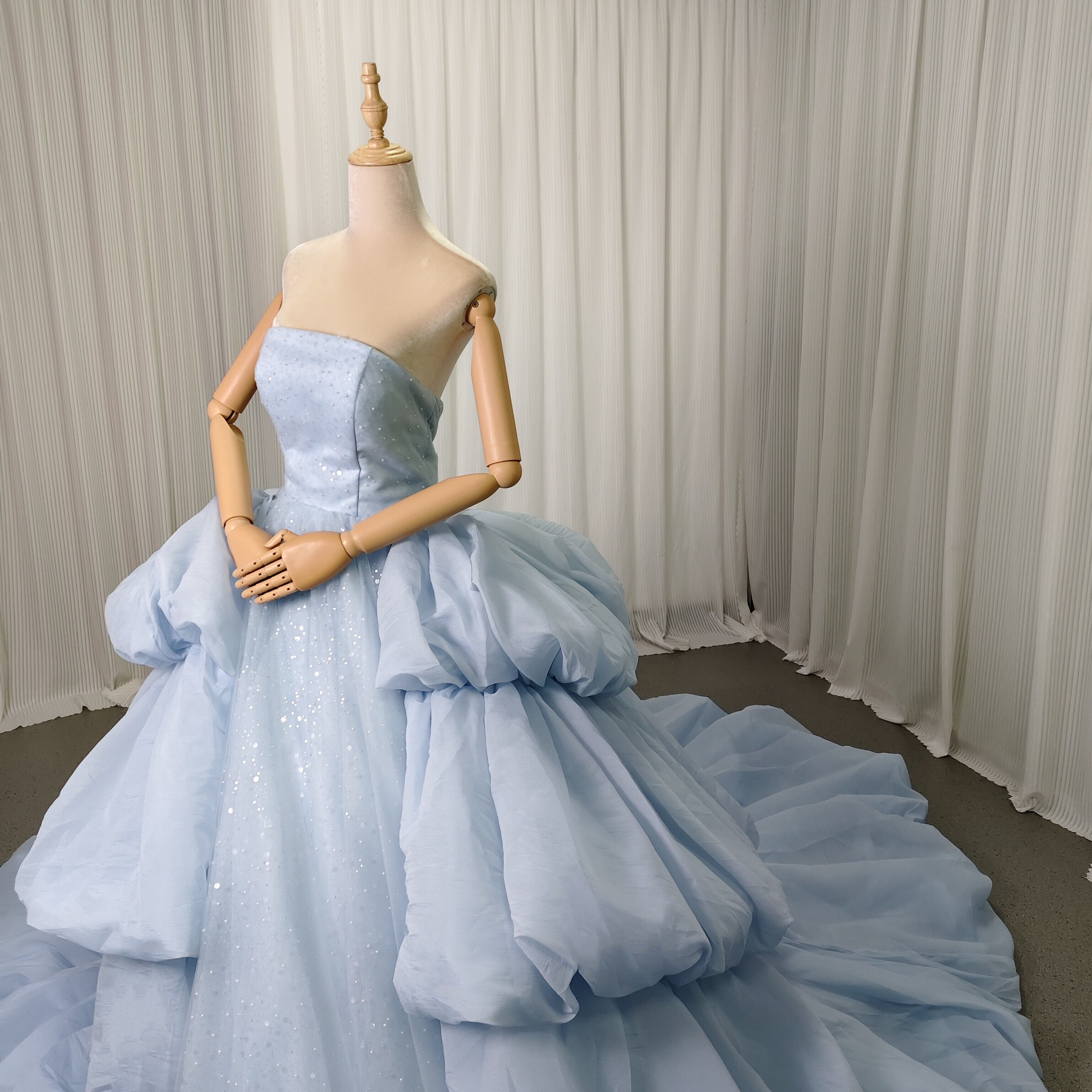 実例写真 !3waysカラードレス ブルーグレーキラキラチュール ふわふわオーバースカート サッシュベルト 結婚式 披露宴