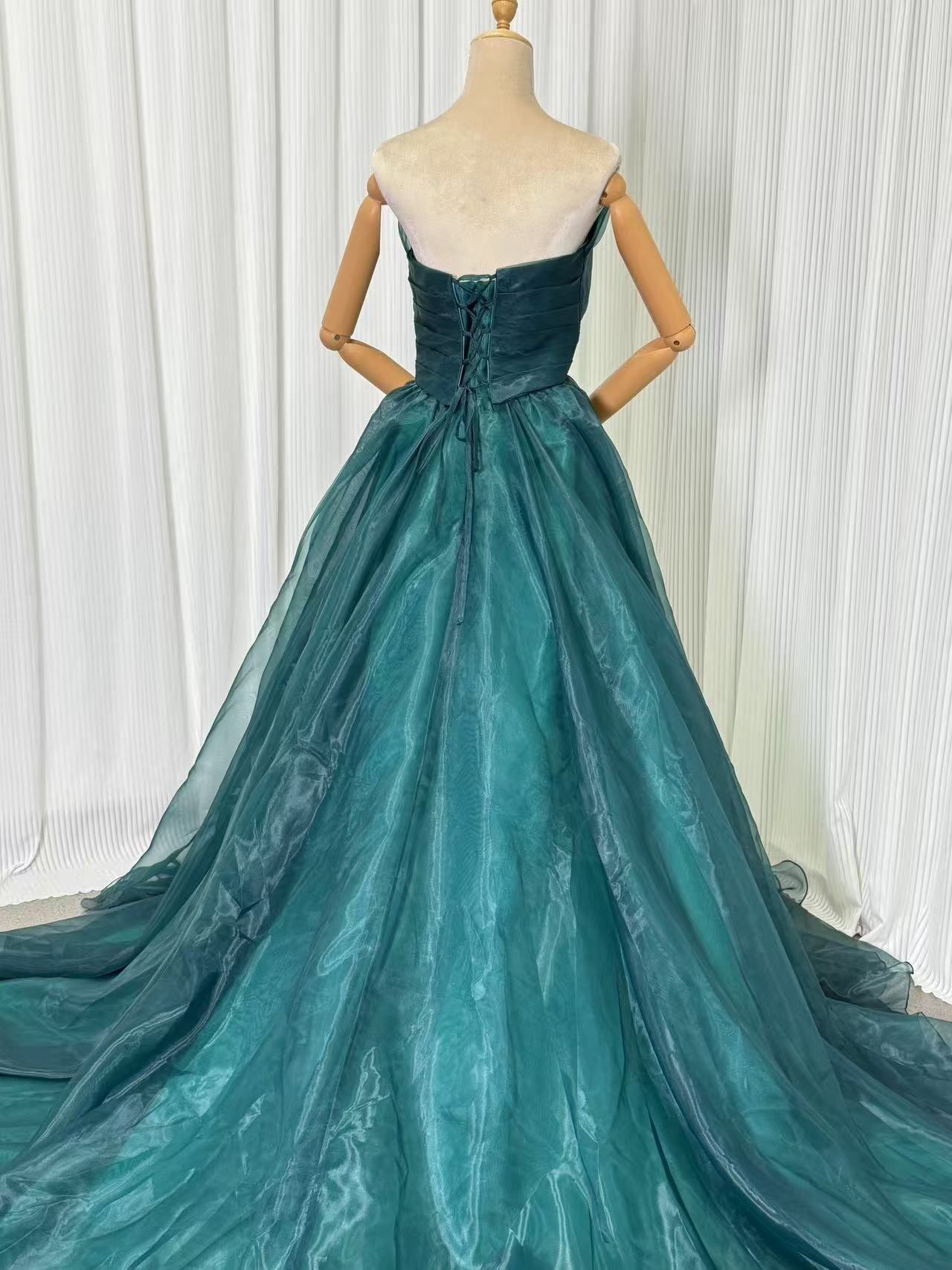 実例写真 !グリーン 上質オーガンジー カラードレス ロングトレーン 結婚式 披露宴