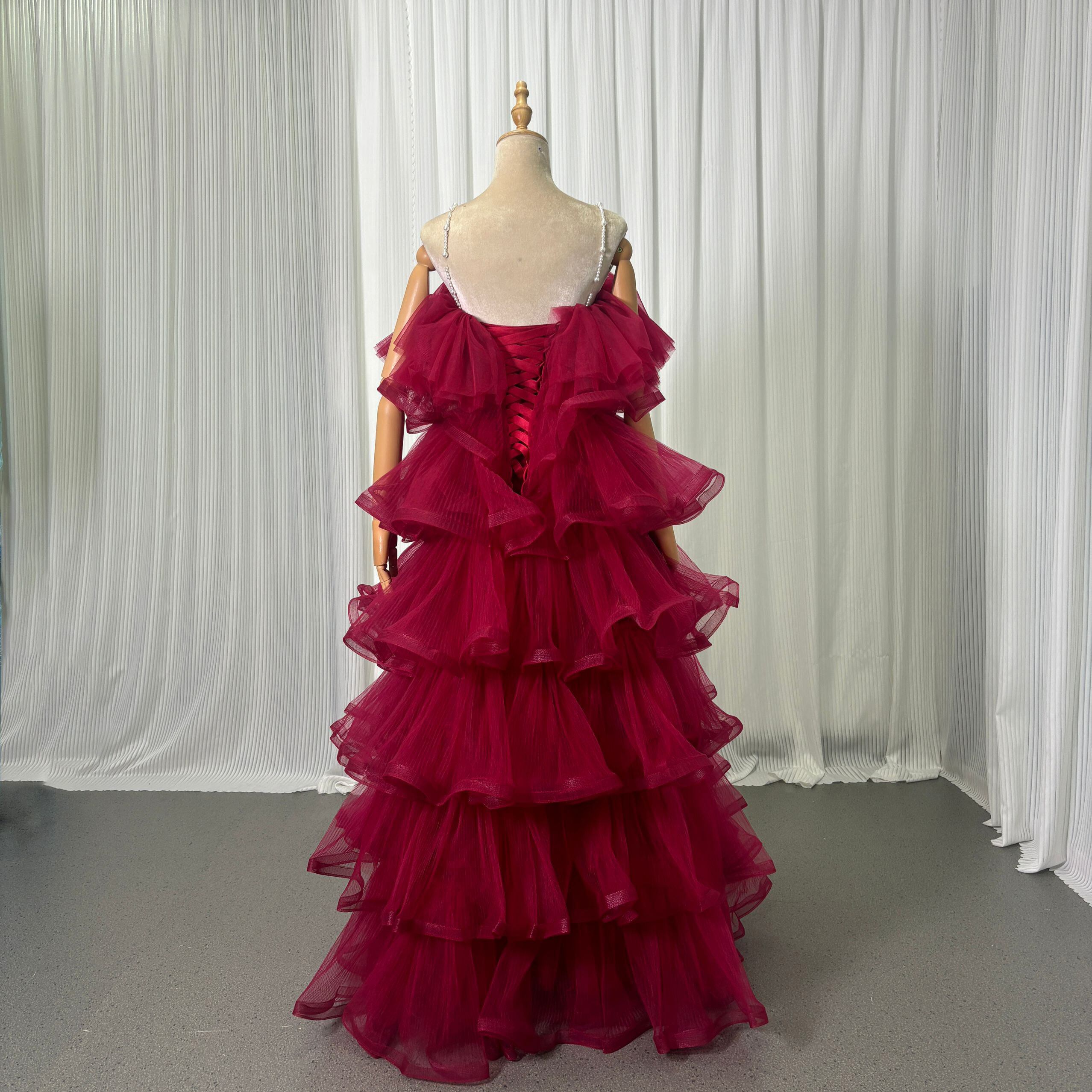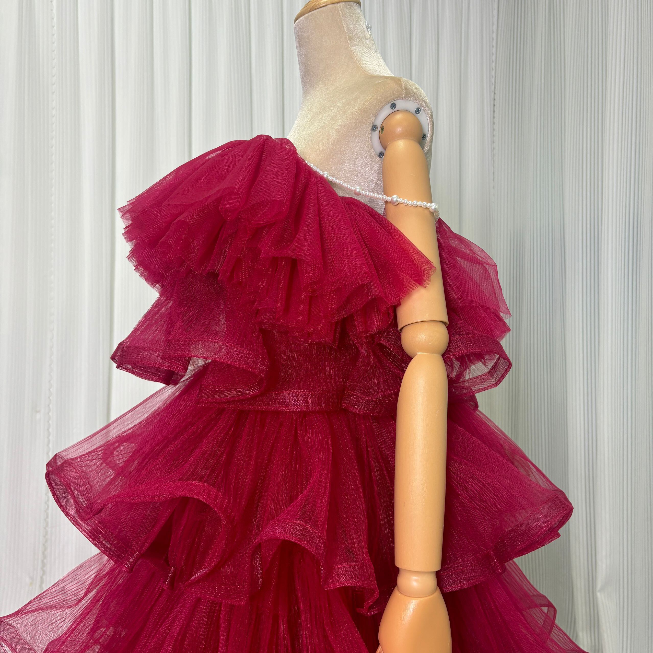 送料無料! ビビッドピンク ベアトップ カラードレス ソフトチュール もこもこドレス ティアードのドレス 挙式/前撮り/結婚式